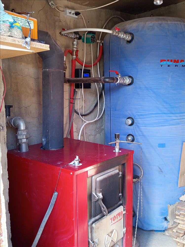 A fűtésért egy központi vegyestüzelésű kazán felel, amelyhez egy 1200 literes puffertartály tartozik.