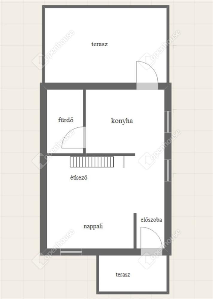 - a földszinten található egy előszoba, nappali + étkező, konyha, fürdőszoba.
