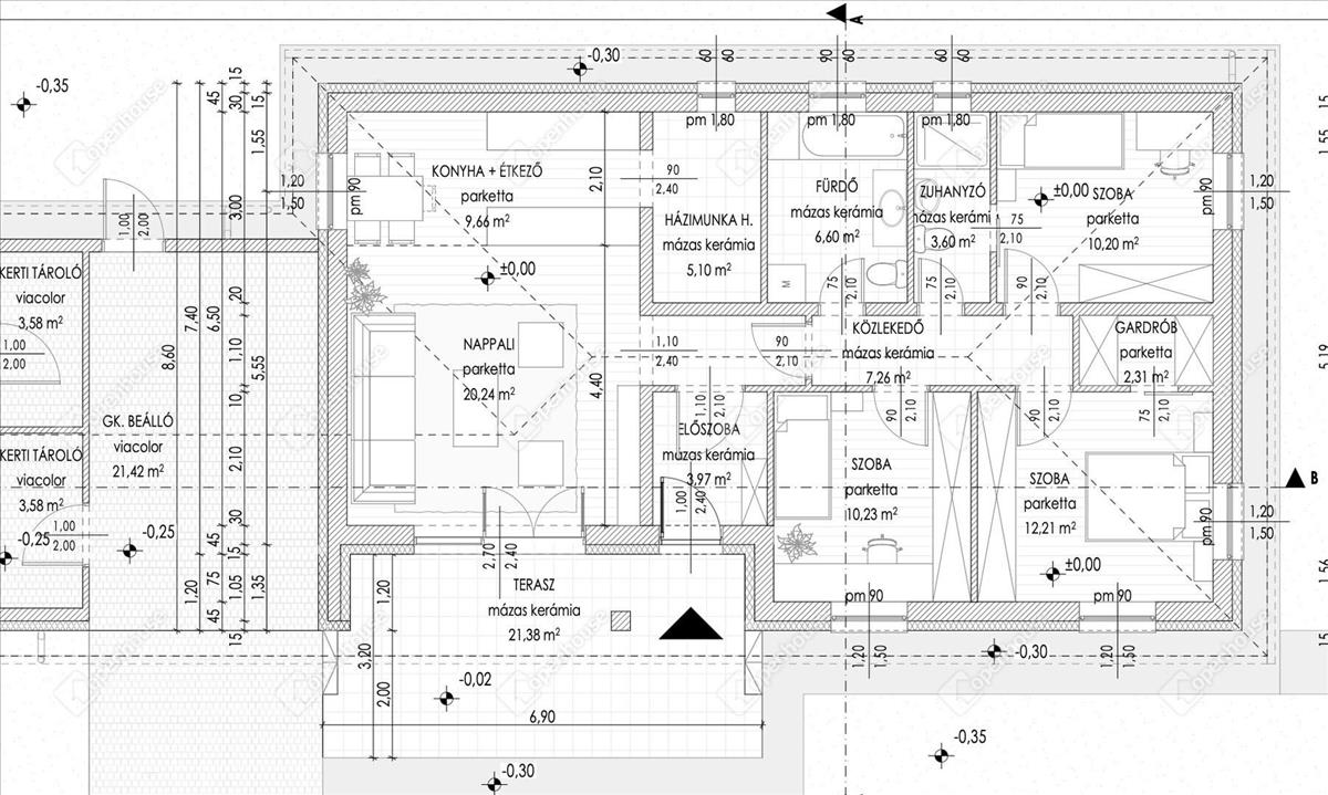 Az ingatlan hasznos alapterülete 91, 38 m2, terasz 21. 44m2, (21, 42m2) gépkocsitároló és kerti tároló 3. 58m2. Csendes aszfaltozott utcában van a házikó, a környékben bevásárlási lehetőség, buszmegálló, bölcsőde 10 perc sétán belül. 3 Hálószoba, egy hatalmas amerikakonyhás nappali, fürdőszoba + gépészeti helyiség és egy plusz zuhanyzó is megtalálható az lakásban. Saját kert 330 m2.