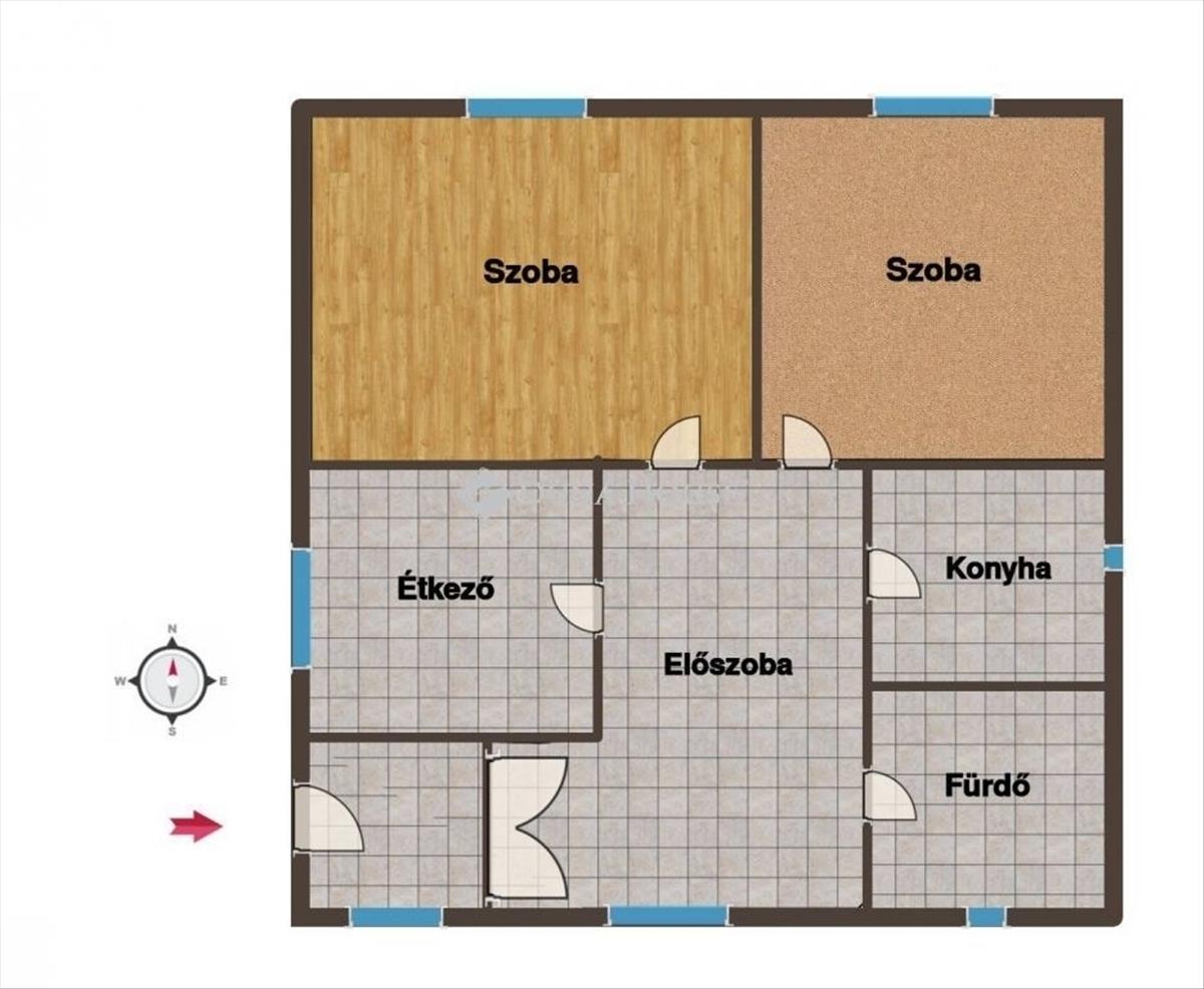 - Praktikus belső elrendezés: 2 szoba, fürdőszoba káddal és zuhanyzóval, konyha, étkező, előszoba