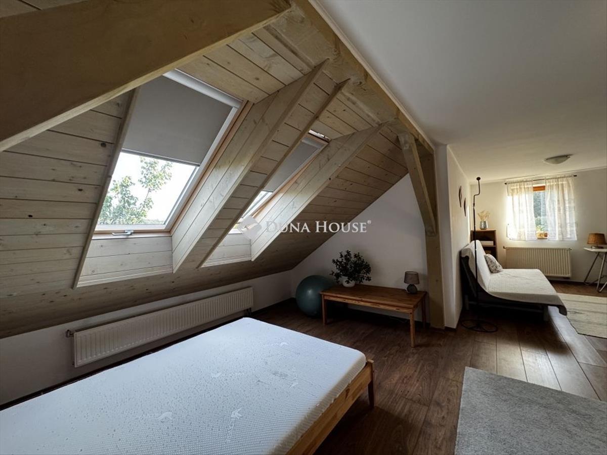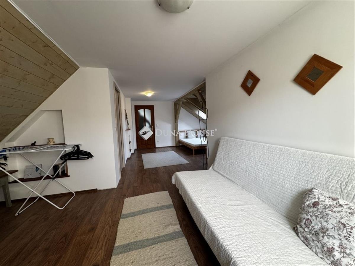 Az emeleti részre felérve, egy dolgozó sarkot, egy zuhanyzóval és wc-vel ellátott fürdőszobát, egy nagy méretű nappali, szobát és egy gardrób részt találunk.