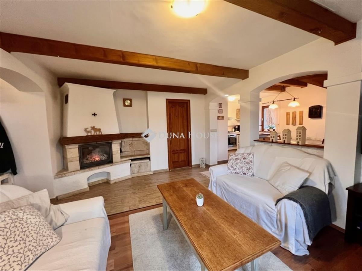 A fűtésről, központi, fa tüzelésű vízteres kandalló gondoskodik, mely a nagy méretű nappali hangulatát teszi igazán széppé.