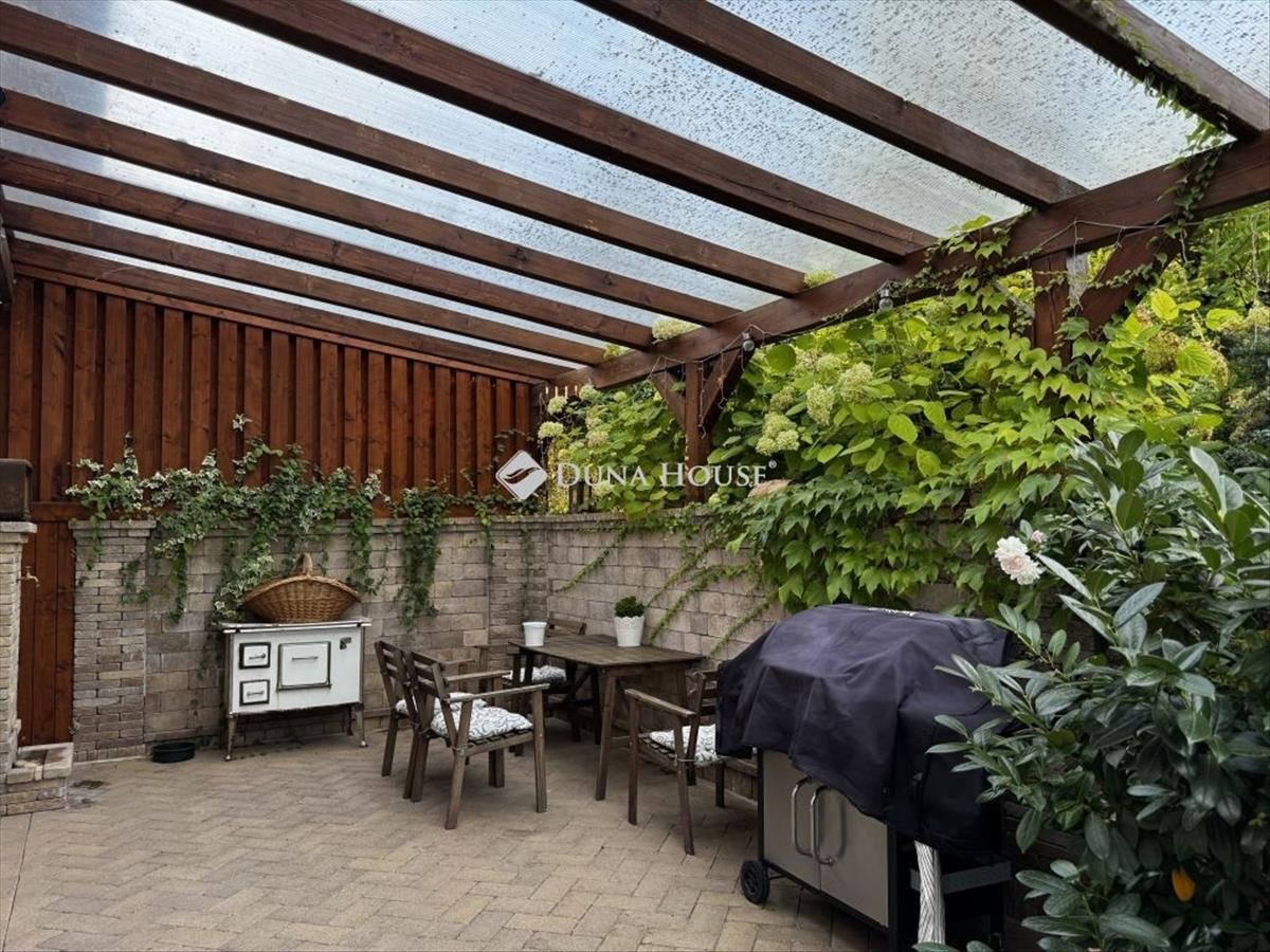 A nappaliból nyílik a keleti fekvésű, pergolával fedett, nagy méretű terasz.