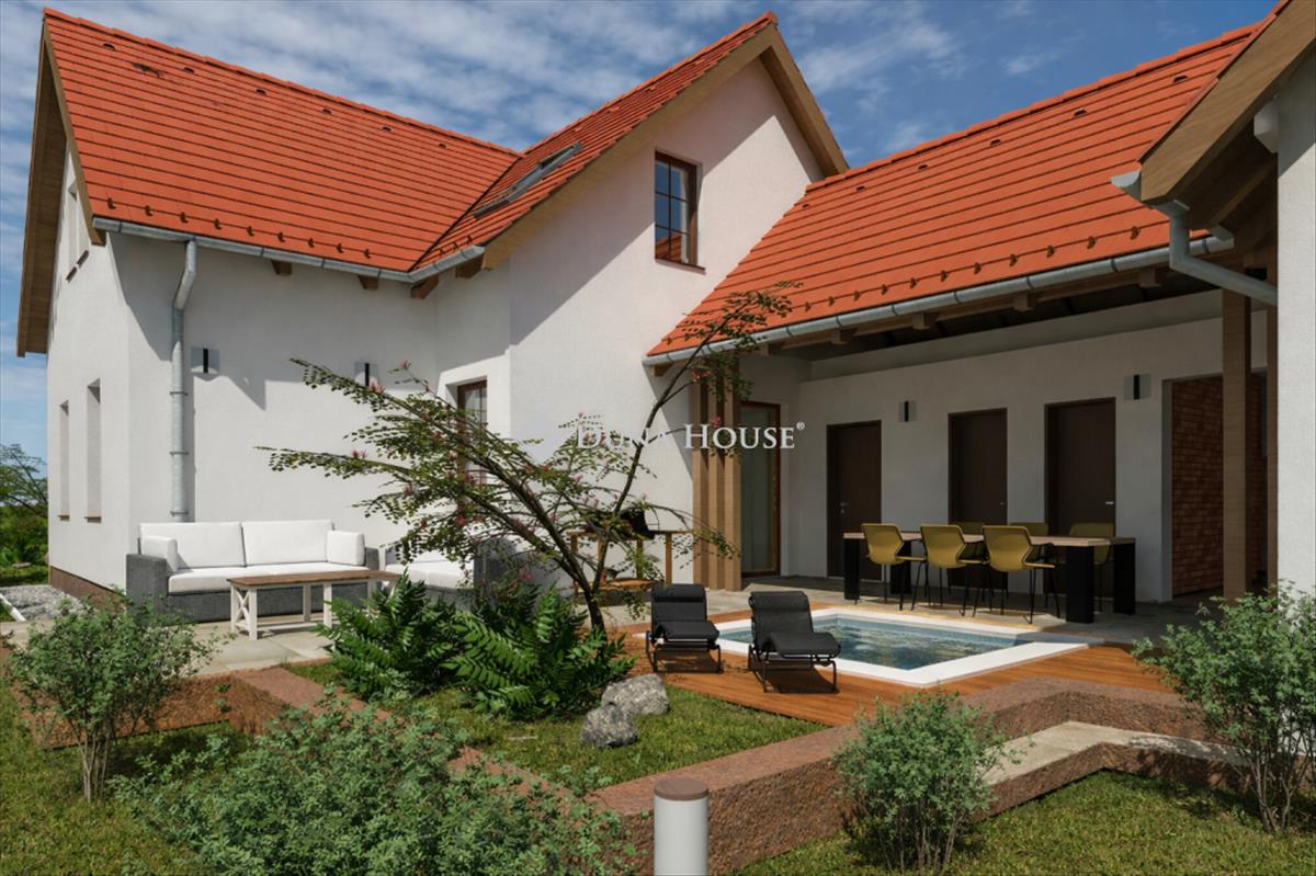 A házhoz tartozó 15 m²-es fedett terasz és 20 m²-es nyitott terasz tökéletes helyszíne a pihenésnek és a közös pillanatoknak.
