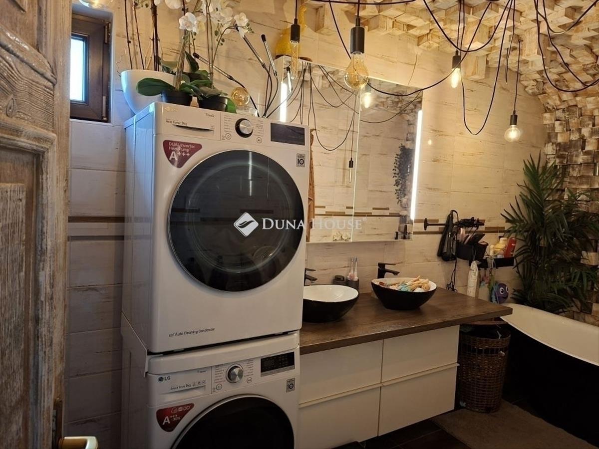A ház egyik nagy előnye a napelemes rendszer, amelynek köszönhetően az éves rezsi körülbelül 45. 000 Ft. a komfortérzetet klíma, padlófűtés és radiátoros fűtés biztosítja. a biztonságról kamera- és riasztórendszer gondoskodik, míg a kert locsolórendszerrel, viacolor burkolattal és műfűvel lett kialakítva.