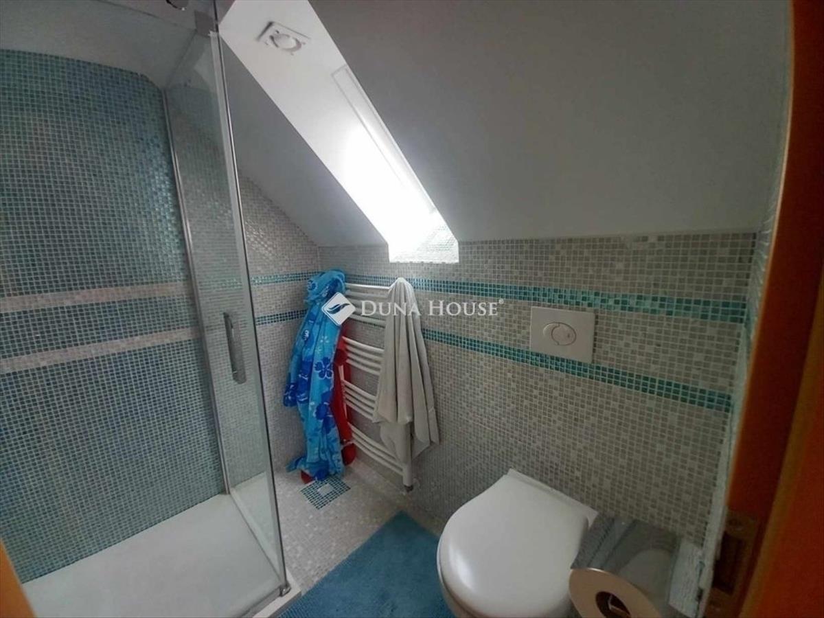 A tetőtérben 34m2-es hasznos alapterületen, közlekedő és szoba kapott helyet, klímával ellátva. További extrák: elektromos kapu, elektromos garázsajtó, fúrt kút, ipari áram. Autóval 2 percre a városközponttól.