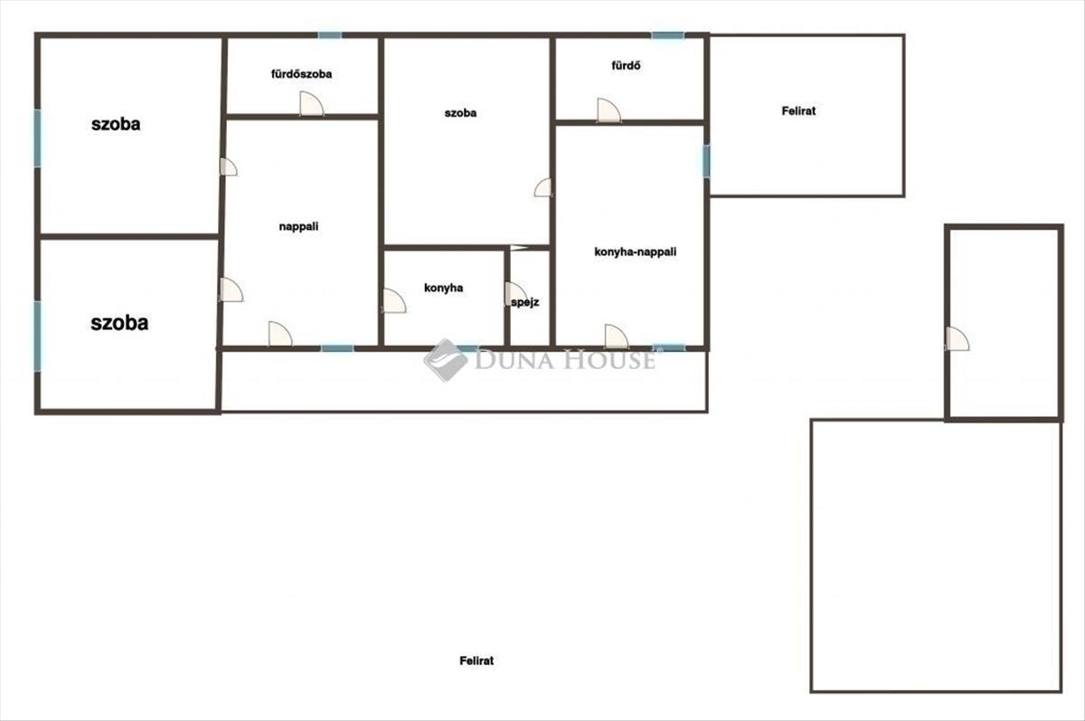 Első lakrész: 2 szoba, nappali, konyha, fürdőszoba; fűtése: gázkazán.