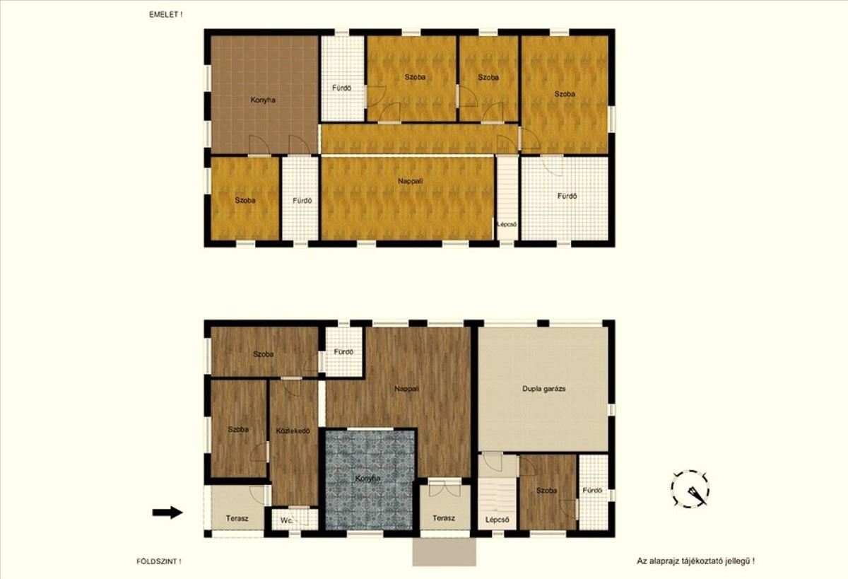 517 m2-es telken, 315 m2-es, 9 szobás és 5 fürdőszobás, két szintes, dupla garázsos, tégla családi ház, még 2 udvari fedett beállóval és egy tárolóval, várja új tulajdonosait.