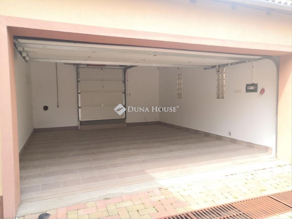 A házhoz tartozó 1678m2-es telekterület szépen rendezett. Az autóbeálláshoz, járdaként, illetve kinti időtöltéshez adott területek jó minőségű térkővel fedettek, emellett zöldterület, épített kert, sziklakert is megtalálható a kifejezetten tágas területen. Parkoláshoz 2 darab, 2 állásos garázs áll erndelkezésre, melyek természetesen távirányítható, elektromos kapuval nyithatóak, akárcsak a telekre bejáratot biztosító kapu. Mindkét garázsban elektromos autótöltéshez is rendelkezésre áll kiállás. Térkövezett területen ezen felül is megoldott további autók parkolása. Tároláshoz egy további tágas tárolóhelyyiség, és egy borospince jellegű, boltíves, száraz pince is rendelkezésre áll (nem a ház alatt található).
