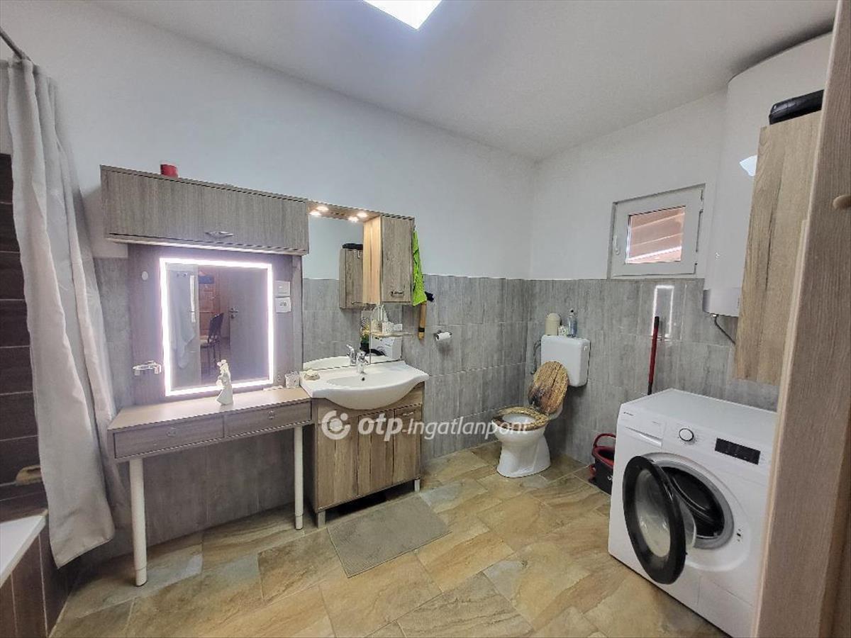 A ház 518 m2-es telken áll, 121, 3 jól átgondolt, praktikus élettérrel, külön mérőórákkal és korszerű, átfolyós kombi gázkazánnal. a kisebb lakrészben napfényes amerikai konyhás nappali, egy kényelmes hálószoba és egy nagy fürdőszoba kapott helyet, míg a nagyobb lakrész konyhát kamrával, nappalit, két tágas hálószobát és egy fürdőszobát kínál.