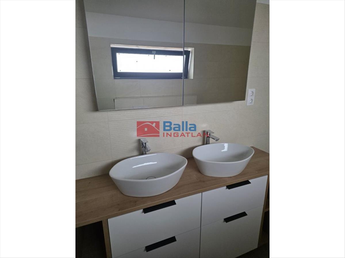 Az emeleten három hálószoba kapott helyet, valamint egy épített zuhanyzós fürdőszoba dupla mosdóval, Wc-vel és bidével. a galériás részen egy tágas beépített gardrób biztosít elegendő tárolóhelyet, így a praktikum és a stílus tökéletesen kombinálódik az egész házban.