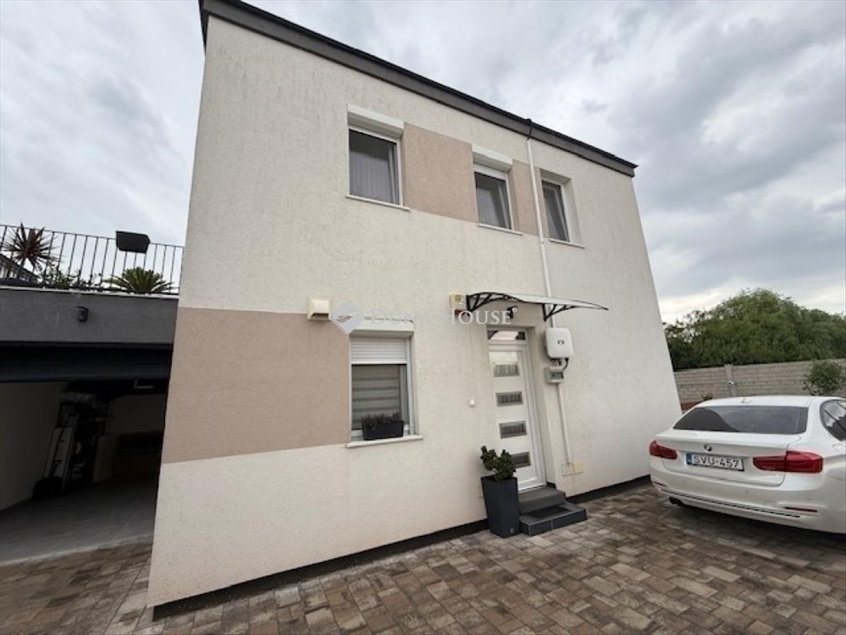 Vecsés egyik közkedvelt zárt lakóparkjában kínálom megvételre ezt a csodaszép ékszerdobozt, melybe valóban csak költözni kell! ! ! a Market Centrálhoz közel kínálom megvételre ezt a 131 nm alapterülettel rendelkező ingatlant a hozzá tartozó 263 nm kerttel. Az épület 2020-ban épült, Porotherm 30 as K téglából, rajta 10 cm grafit szigetelléssel és fehér nemesvakolat záróréteggel ellátva. Az ingatlan kialakítása a következő: Az ingatlan alap területe 54 nm mely 2 szinten összesen 96 nm lakóteret biztosít. Ezen felül van egy nyitott terasz mely 19, 5 nm és egy 15, 35 nm alapterületű garázs is mely a lakáshoz tartozik. Nincs közös fal egyik ingatlannal sem a lakóparkaban! ! ! a telek össz. : Alap területe 263 nm melyből ha kivesszük a lakó épületet, a fent maradó 180 nm saját kertként funkcionál. a képeken jól kivehető, hogy körbejárható az ingatlan, melynek a kert része gyönyörűen füvesített. a kertben található egy kisebb terasz mely télen is kifogástalanul használható, mert ponyvával téliesítette a tulajdonos. Az ingatlan korszerű, minden a mostani építési szabályzatnak megfelelően épült fel, mindez gyönyörű kivitelezésben. a lakásban kivétel nélkül minőségi és Prémium anyagok kerültek beszerelésre. Ez magába foglalja a burkolatokat, szanitereket, beltéri ajtókat és mindent ami kielégítheti az igényesség fogalmát! a nyílászárók részben elektromos, részben mechanikus redőnnyel + szúnyoghálóval felszereltek! Az ingatlanban található az alsó szinten -Amerikai konyhás nappali-Étkező-Előtér-Fürdőszoba épített zuhannyal -LépcsőtérEmeleten -3 db szoba -fürdőszoba káddal ellátva -Közlekedő -Hatalmas nyitott terasz Ezen felül az épület bal oldalában egy elektromos kapunyitással rendelkező zárt garázs! a lakás fűtéséről és melegvíz ellátásáról, gáz cirkó gondoskodik padlón keresztül történő hőleadással. a fürdőszobákban + törölköző szárítók lettek felszerelve. a kertben automata öntöző rendszer van. Az ingatlan a képeken látható berendezett állapotban kerül értékesítésre, így ide valóban csak a bőröndöt kell behúzni a vásárlás után :)Amennyiben hirdetésem felkeltette érdeklődését, keressen bizalommal és nézzük meg együtt ezt a remek ingatlant!