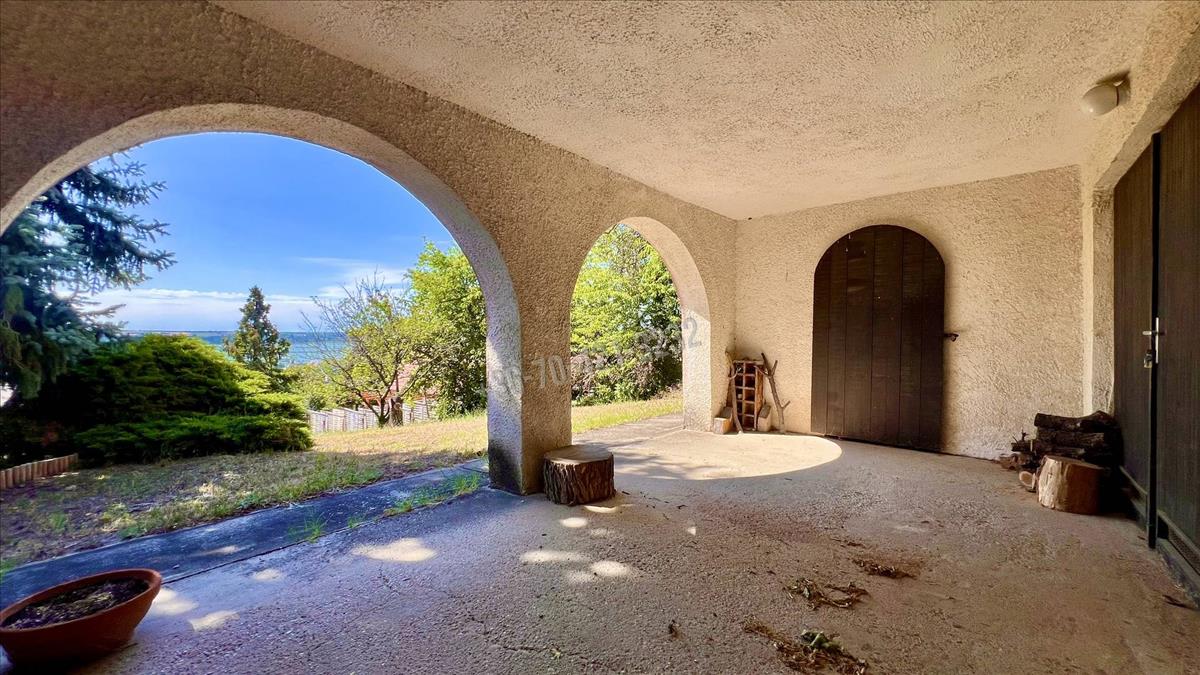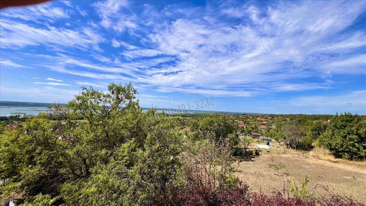 Velence egyik legszebb pontján, a Bence-hegyen eladó egy 1400 m²-es, enyhén lejtős, teljes panorámás telek, rajta egy 60 m²-es, téglából épült nyaralóval.