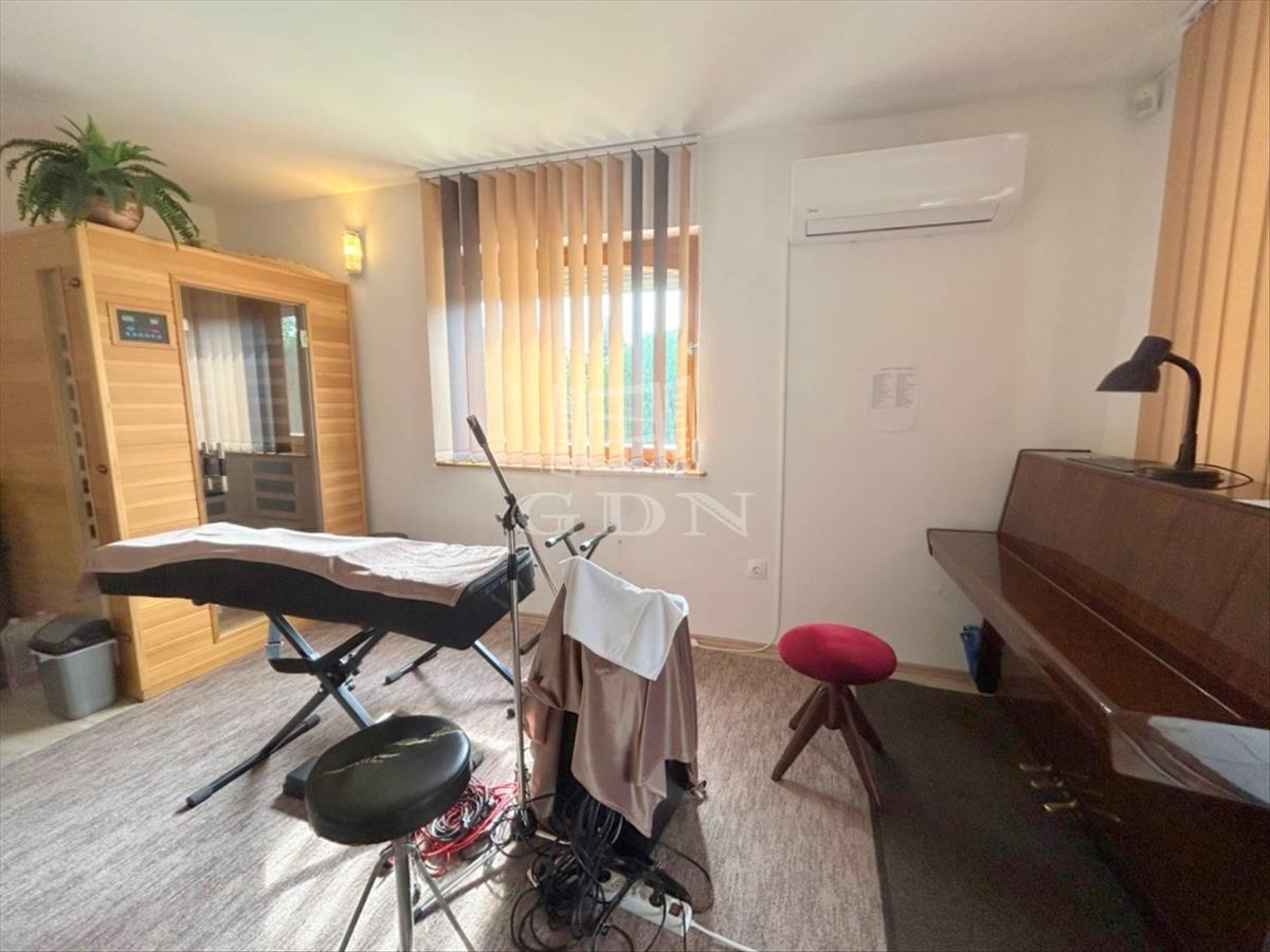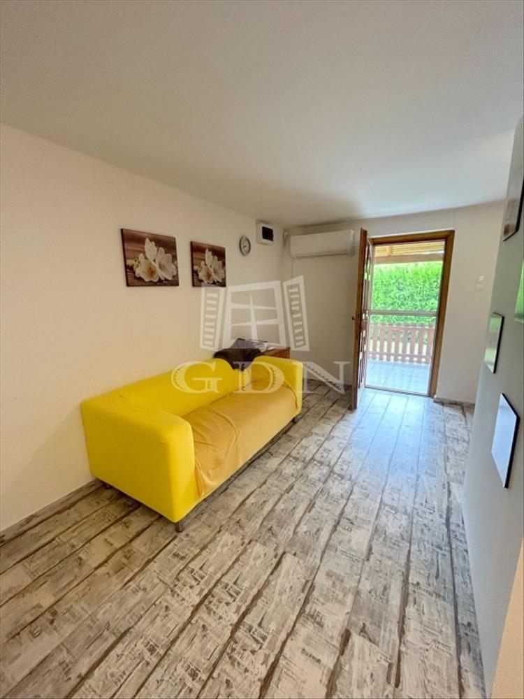 A nettó 54 m2 lakóterületű, klímákkal és fűtőpanelekkel fűthető, szintén 21 m2-es fedett terasszal rendelkező tégla melléképület egész évben lakható/hasznosítható.
