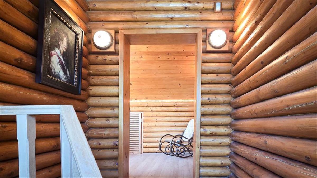- Rönkből készült fő- és közfalak: kívülről teljes rönk, fém szigetelés, 8 cm-es szigetelés, kábelezés szerelő csatornában, belül fél rönk
