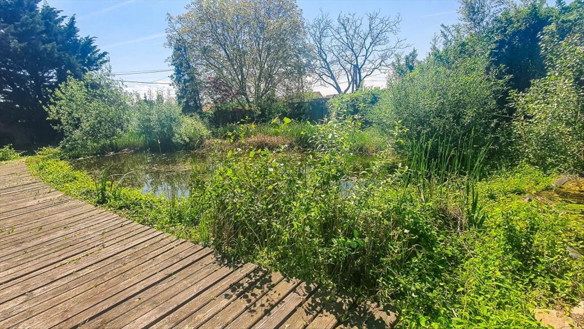 - Ground floor double-windowed room overlooking the pond and back garden