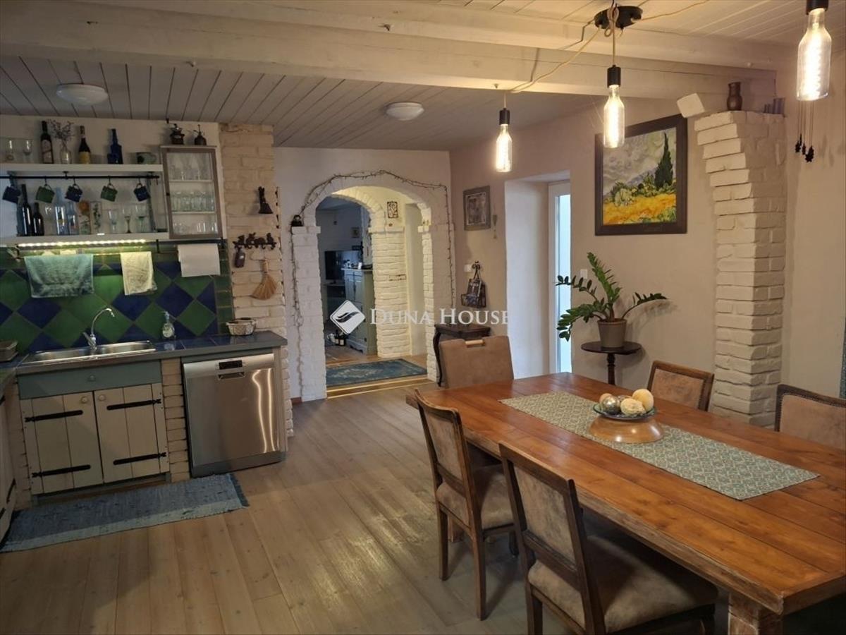 Velencén eladásra kínálunk egy gyönyörű, rusztikus belső építészettel rendelkező ingatlant, mely nem csak a belső tereivel, de a külső adottságaival is különleges. Telekméret: 817 m2. Ház alapterület: 190 m2Földszint: előszoba, közlekedő, nappali, nagy méretű konyha étkezővel, lakóterasz, kamra, fürdőszoba + wc. emelet: 4 db hálószoba, nappali (multifunkcionális), fürdőszoba külön wc-vel. Melléképület: 60 m2 dupla beállásos garázs, külön bejáratú iroda helyiség, műhely, tároló. Külön lakrész kialakítható. Ház 2019-ben történt felújítása során külső szigetelést (10 cm dryvit), tetőfelújítást, korszerű, 3 rétegű műanyag nyílászárókat kapott. Az emeleten lévő helyiségek 2 éve szintén teljes felújításon estek át. Telepítésre került 11, 4 kW-os házi naperőmű rendszer 40 db napelem elhelyezésével. Ennek köszönhetően a ház villany és fűtés költsége jelenleg 0 forint éves szinten! Fűtésről 7 db inverteres hűtő-fűtő klíma gondoskodik. Gáz kikötésre került, az telken belül van a gázcsonk. Földszinti nappaliban beépítésre került egy egyedileg kialakított, kéményventilátorral üzemeltetett, fatüzelésű kandalló! Nappaliból nyíló lakóterasz ponyva védettsége miatt nyári konyhaként + nappaliként áprilistól októberig kiválóan funkcionál! a kertben gyümölcsfák, dísznövények és egy gyönyörű levendulaágyás található. a fúrt kútnak köszönhetően a kert öntözése gazdaságos és környezetbarát módon megoldott. Ez a különleges otthon tökéletes választás azoknak, akik elszakadva a város zajától, mégis komfortos és modern környezetben szeretnének élni. Központi fekvésű, csendes utcában található ingatlan, gyalog 5-10 percre van a vasútállomástól, óvodától, két tannyelvű Gimnázium és Általános iskolától.