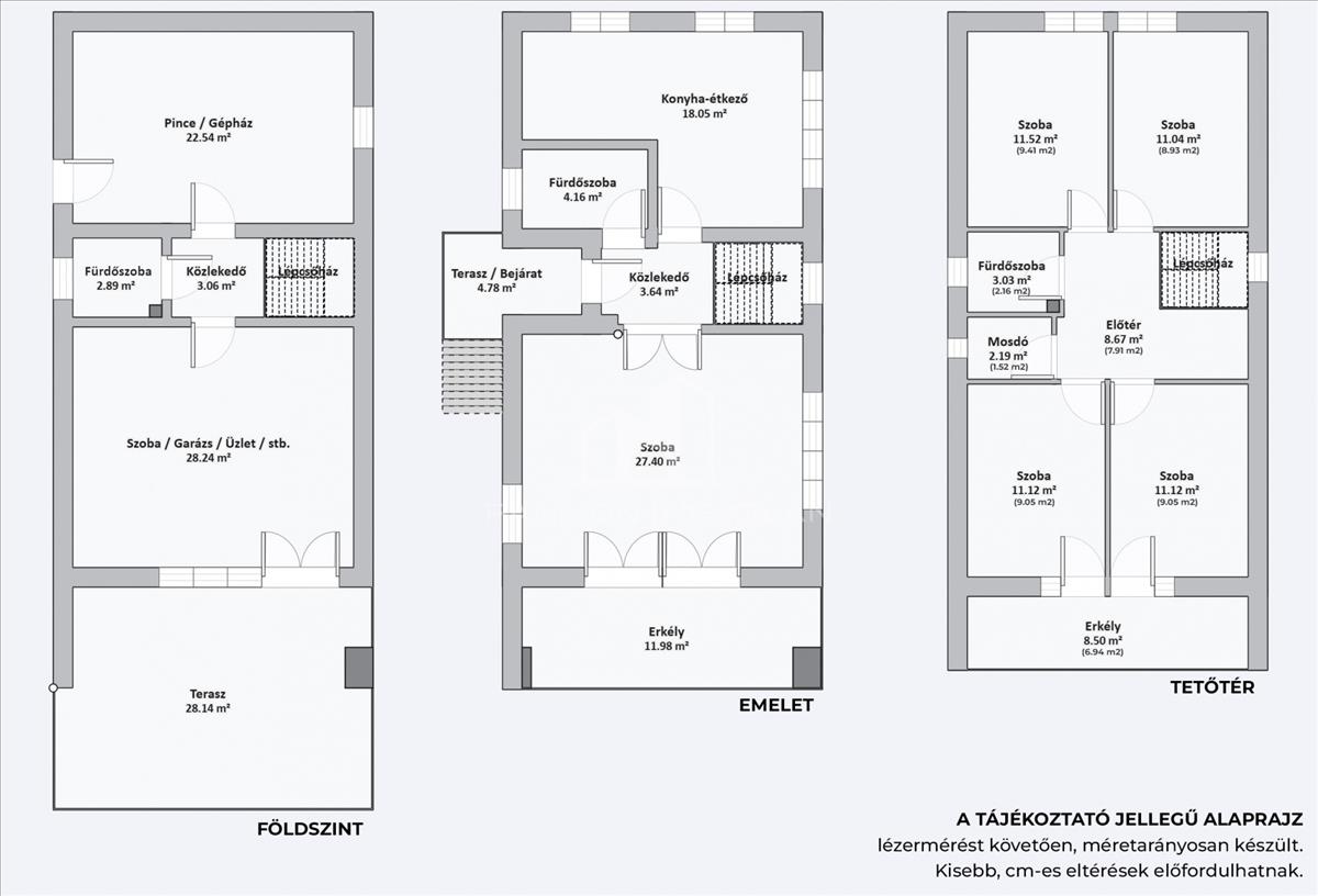- Tetőtér: 2 szoba, fürdőszoba előtér
