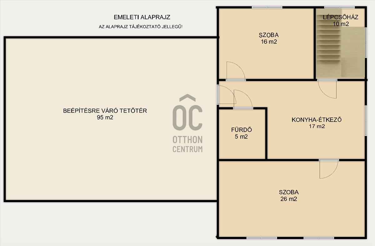 - Felső szinten található 2 szoba, nagy konyha étkezővel, egy fürdőszoba, továbbá 95 m² tetőbeépítési lehetőség!