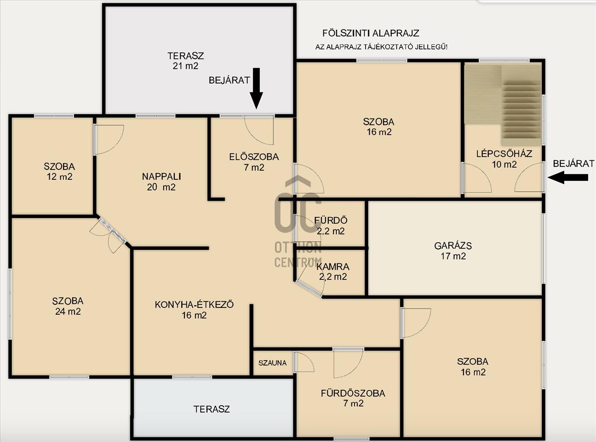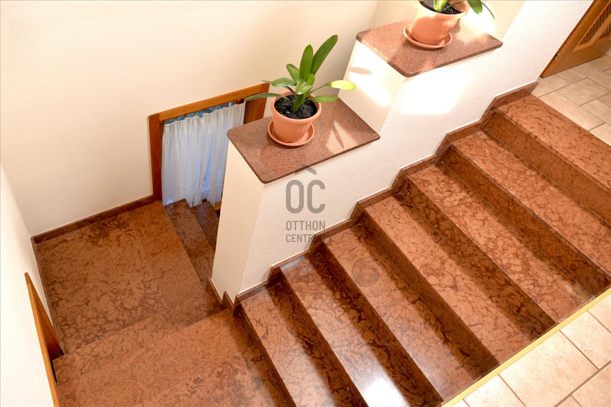 - Alsó szinten kialakításra került nappali + 4 szoba, konyha-étkezővel, spájz, 2 fürdőszoba, szauna, garázs