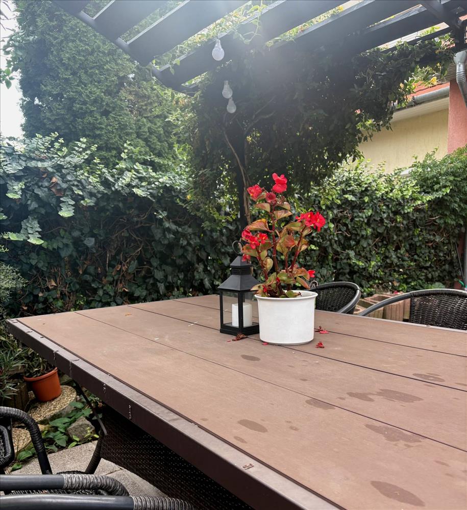 -Elől kiskert a reggel kávézás ideális helyszine,