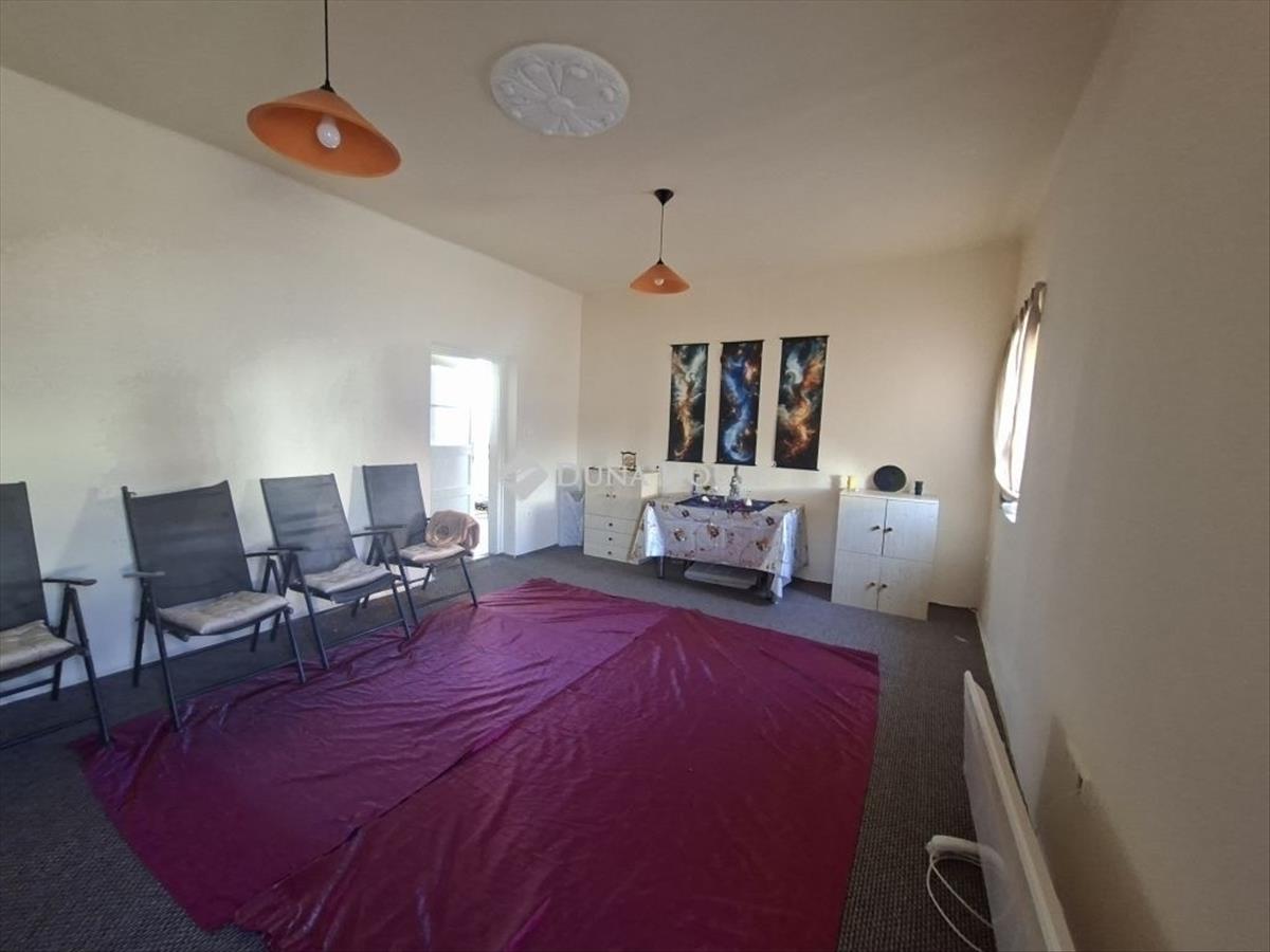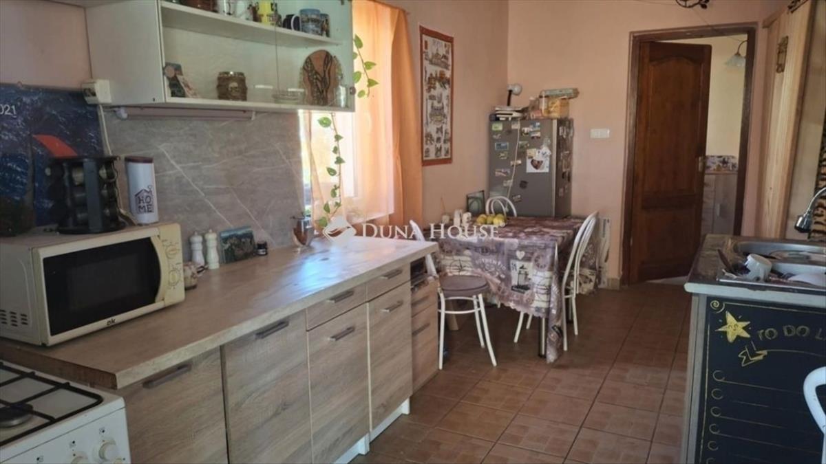 Veresegyház központi részén, kétlakásos, duplakomfortos családi ház eladó nagy saroktelkenVeresegyházon, a Csomádi úton eladásra kínálunk egy jó állapotú, földszintes, téglaépítésű családi házat, amely két különálló lakásból áll, és igény esetén egybenyitható. Az ingatlan 82 m²-es, 893 m²-es saroktelken helyezkedik el, két utcáról megközelíthető, udvari beállóval több autó részére. Főbb jellemzők:Összesen 2 és fél szoba, 2 konyha, 2 fürdőszoba, gardróbDuplakomfortos kialakításAkadálymentesítettBeépíthető tetőtér, 9 m²-es pinceElektromos fűtőpanelek + fa tüzelésű kandalló beépíthetőMelegvíz: elektromos bojlerEnergetikai besorolás: b, 10 cm külső szigetelésFelújítás 2018-ban: új műanyag nyílászárók, teljes víz- és villanyhálózat csere, tetőszerkezet megújításaNincs gáz bekötve, de modern elektromos rendszer áll rendelkezésre (380 V és 240 V mérőórákkal)A kert rendezett, gyümölcsfákkal, szőlővel, virágokkal, nagy kerti halastóval, gyűrűs kúttal és tárolósátorral. a telek 30%-ban beépíthető, így akár bővíthető 268 m²-ig, vagy új ikerház építése is lehetséges. Az ingatlan 1/1 tulajdonú, per- és tehermentes, azonnal birtokba vehető. a nagyobbik lakás üres, azonnal költözhető, a kisebbik lakrészben jelenleg bérlők élnek, akik megegyezés szerint maradnának, így befektetésre is kiváló lehetőség. További információért és megtekintésért kérem, vegye fel velem a kapcsolatot FIX 3% lakáshitelre megvehető