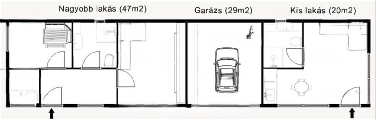 A garázs mindkét oldalára külön álló lakások, épültek.