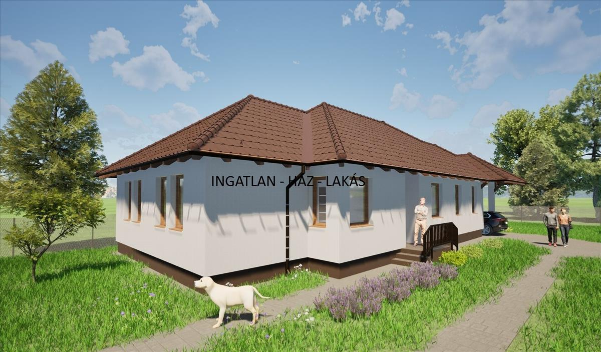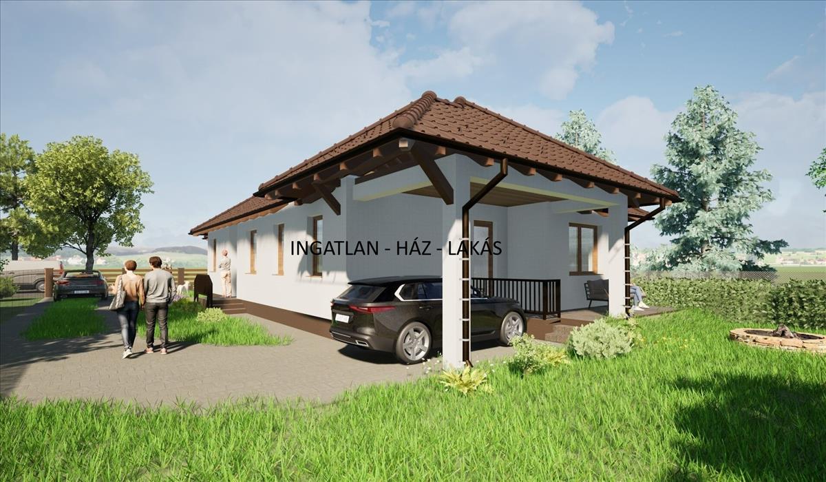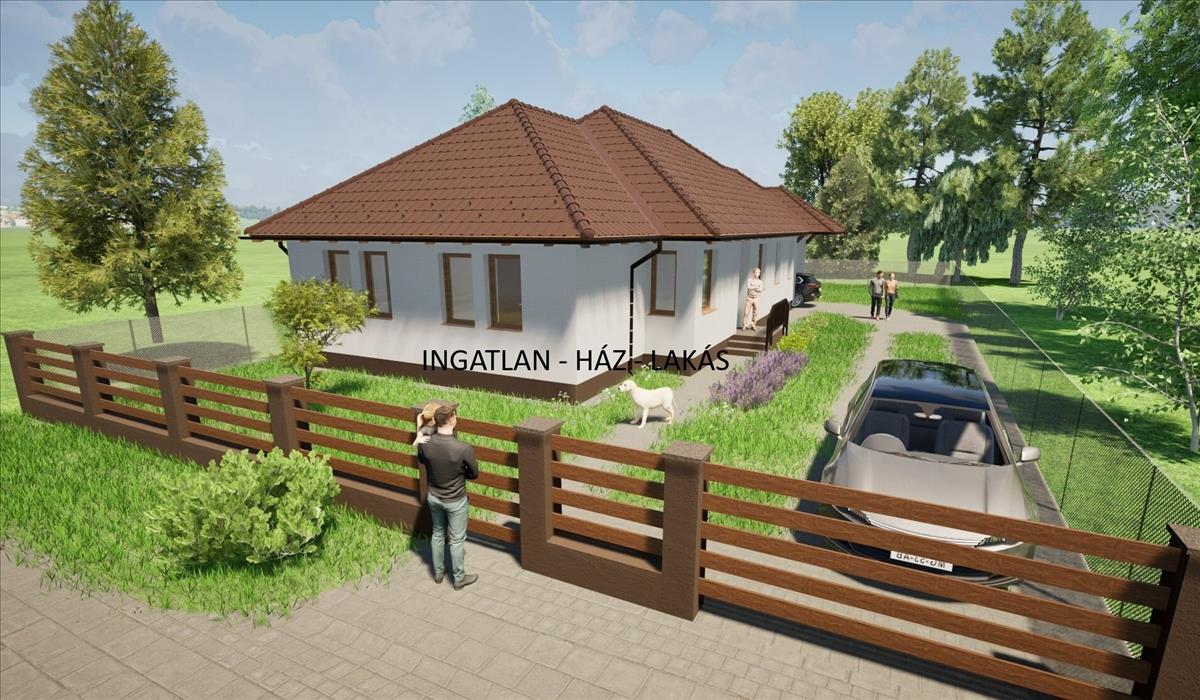 A hirdetésben szereplő fotók egy korábbi referenciaházat mutatnak és látványtervek láthatók.