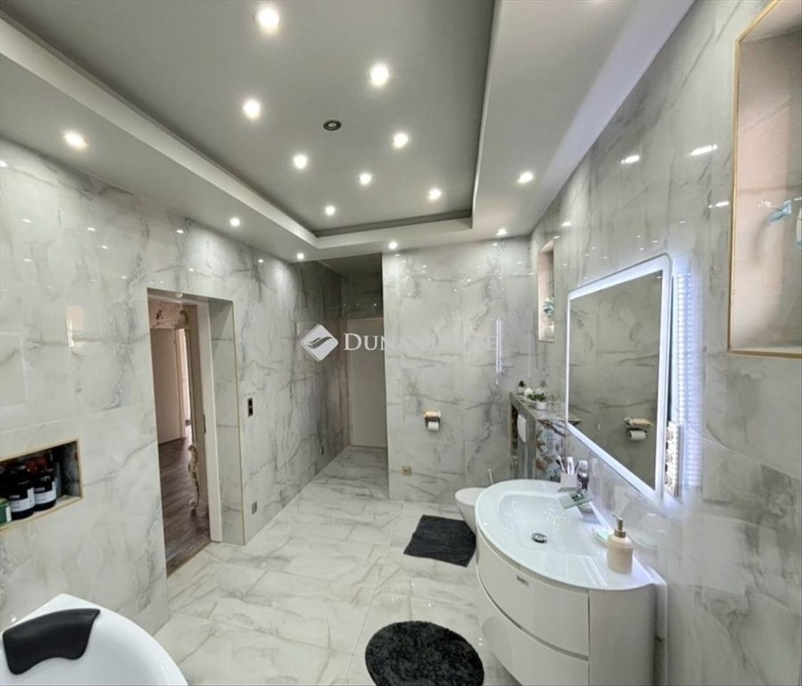 Veresegyházán prémium kialakítású, elszeparált otthon eladó! Egy igazán különleges, nyugodt életteret kínáló ingatlan várja új tulajdonosát Veresegyházán. a 87 m²-es lakótérhez egy tágas, 33 m²-es terasz kapcsolódik, amely tökéletes helyszíne lehet a pihenésnek vagy baráti összejöveteleknek. Az ingatlan elrendezése praktikus: 2 szoba, amerikai konyhás nappali, háztartási helyiség, valamint egy különleges kialakítású, két bejárattal rendelkező fürdőszoba áll rendelkezésre. Főbb előnyök:Minőségi burkolatok minden helyiségbenPadlófűtés a maximális komfortértTeljesen elszeparált tér, nincs belátásKét bejáratos fürdőszoba praktikus és kényelmesSaját kerti sütögető ideális családi és baráti programokhozTágas, jól kihasználható teraszElhelyezkedés és környék:Az ingatlan kiváló lokációval rendelkezik. a közelben minden fontos szolgáltatás megtalálható: Lidl, dm, Rossmann, óvoda és iskola is könnyen elérhető. Ideális választás mindennapi kényelmes élethez. Kinek ideális? Tökéletes választás azoknak, akik nyugodt, privát környezetben szeretnének élni, mégis fontos számukra a városi infrastruktúra közelsége. Családoknak és pároknak egyaránt kiváló lehetőség. Ne hagyja ki ezt az egyedi adottságokkal rendelkező otthont érdemes személyesen is megtekinteni! FIX 3% lakáshitelre megvehető