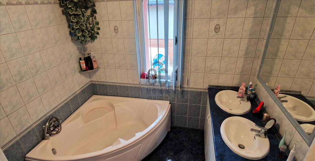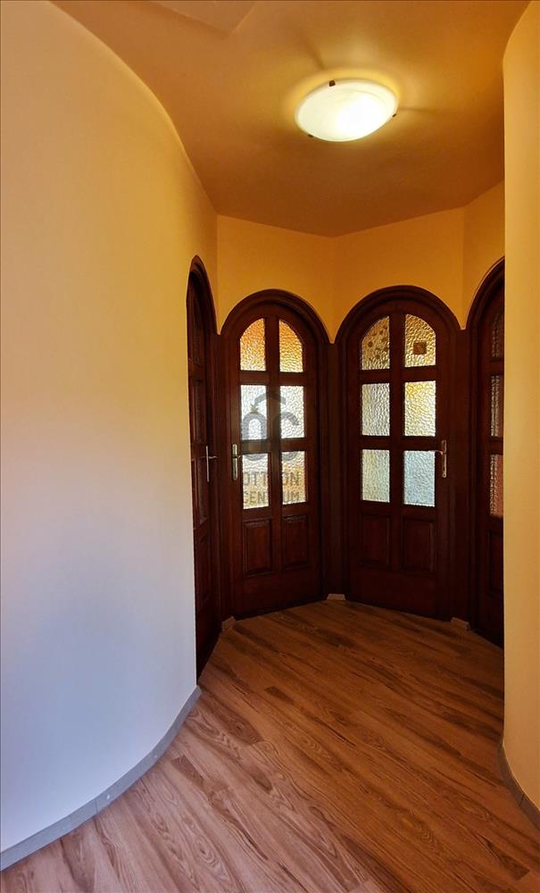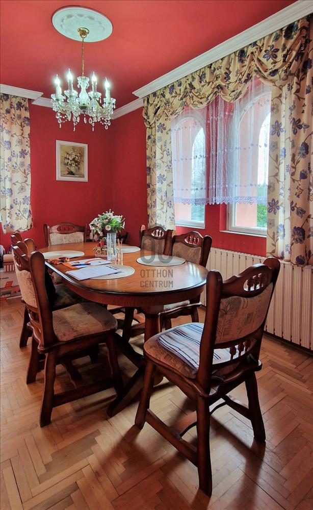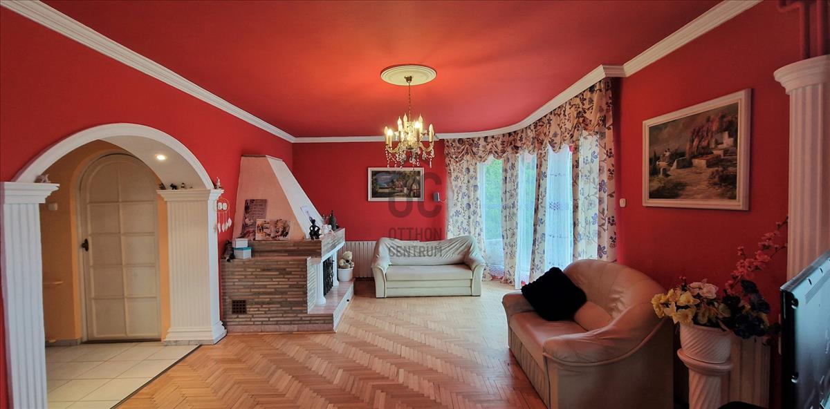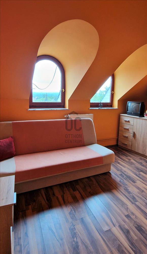 Eladó Veresegyházon, a Széchenyidombon egy 198 nm-es (bruttó 270 nm), 3 szintes, 5 szobás 1992-ben épült családi ház. 77 Nm-es szuterén szintjén jelenleg szép állapotú vendéglátóhely üzemel, ami tovább is üzemeltethető, de igény esetén lakótérré, wellness szintté is átalakítható. 80 Nm-es földszintjét tágas, 50 nm-es terasszal kapcsolatos nappali, külön konyha, étkező, vendég wc, kamra és fürdőszoba alkotja. Beépített, 46 nm-es tetőterében 3 szoba (melyből kettő erkélyes), egy félszoba és fürdőszoba található. Fűtése gáz-cirkó, melyet vegyes tüzelésű kazánnal és kandallóval is ki tudunk egészíteni. a 832 nm-es telken fúrt kút, egy kibetonozással előkészített medence, valamint két gépjármű számára elegendő beállási lehetőség is található. Az ingatlan (a kereskedelmi egységen kívül, ami kiváló állapotú) általános állapota korának megfelelő, de stabil falai 15 cm szigeteléssel rendelkeznek, a tetőtérben új belső nyílászárók, és felújított fürdőszoba várja új lakóit.