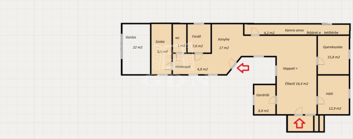 A házban lejárat található egy kb. 5 Nm-es pincébe.