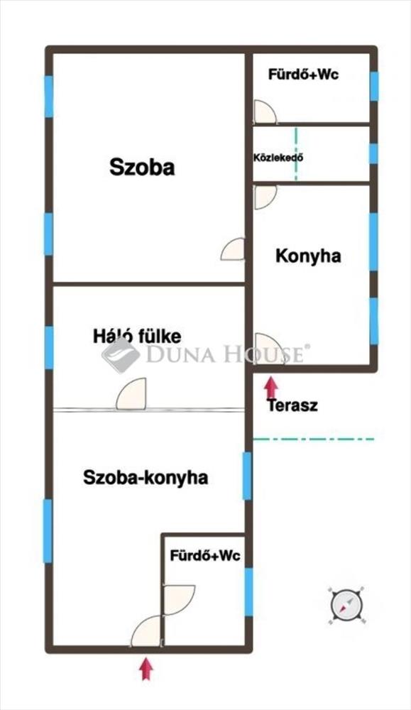 Összesen 2 és fél szoba, 2 konyha, 2 fürdőszoba, gardrób, Duplakomfortos kialakítás, Akadálymentesített, Beépíthető tetőtér, 9 m²-es pince, Elektromos fűtőpanelek + fa tüzelésű kandalló beépíthető