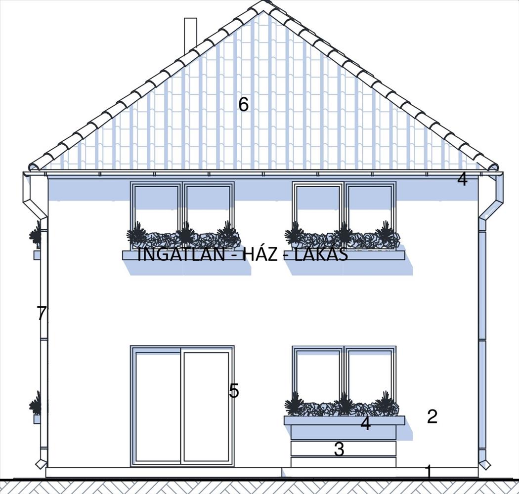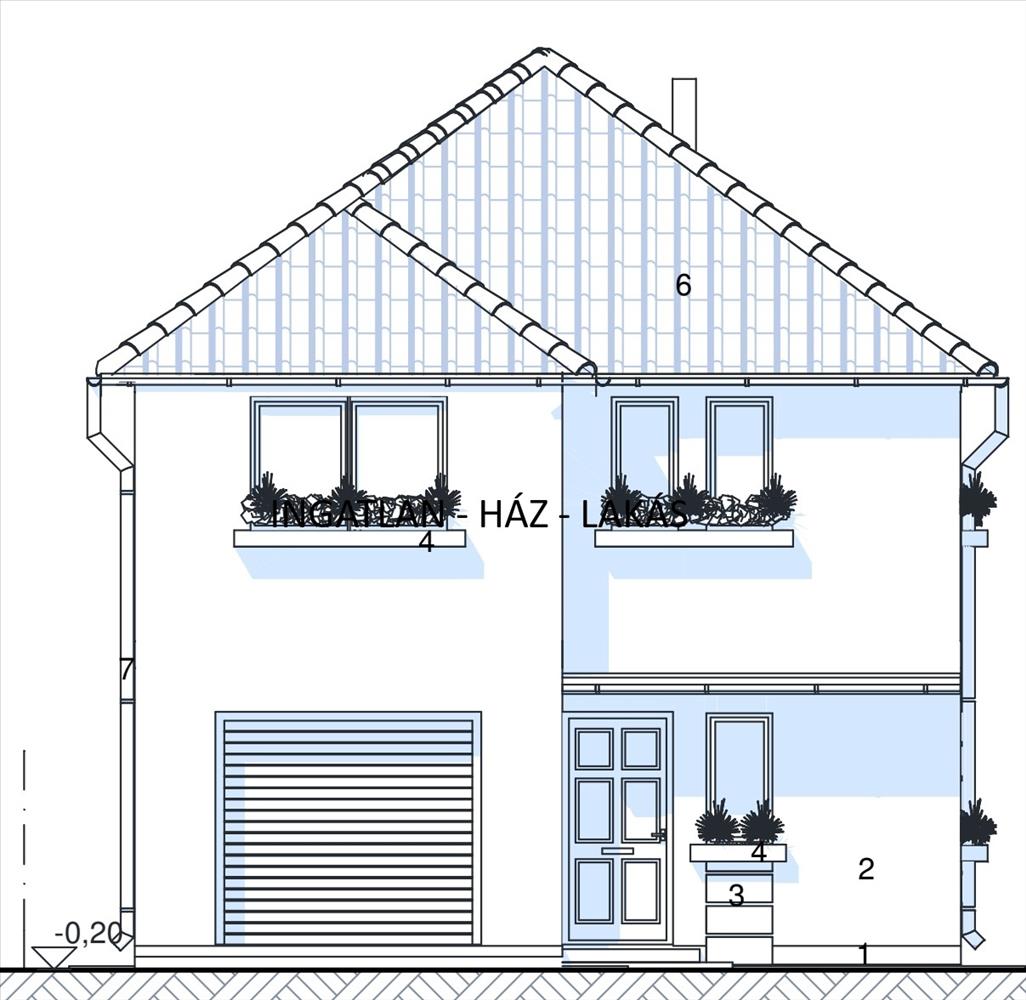 Gépkocsi tárolása az udvaron lehetséges 4 hálószobás kialakítás esetén. Az utcafronti kerítés kis és nagy kapus beton oszlopos – lécezett kivitelben készül.