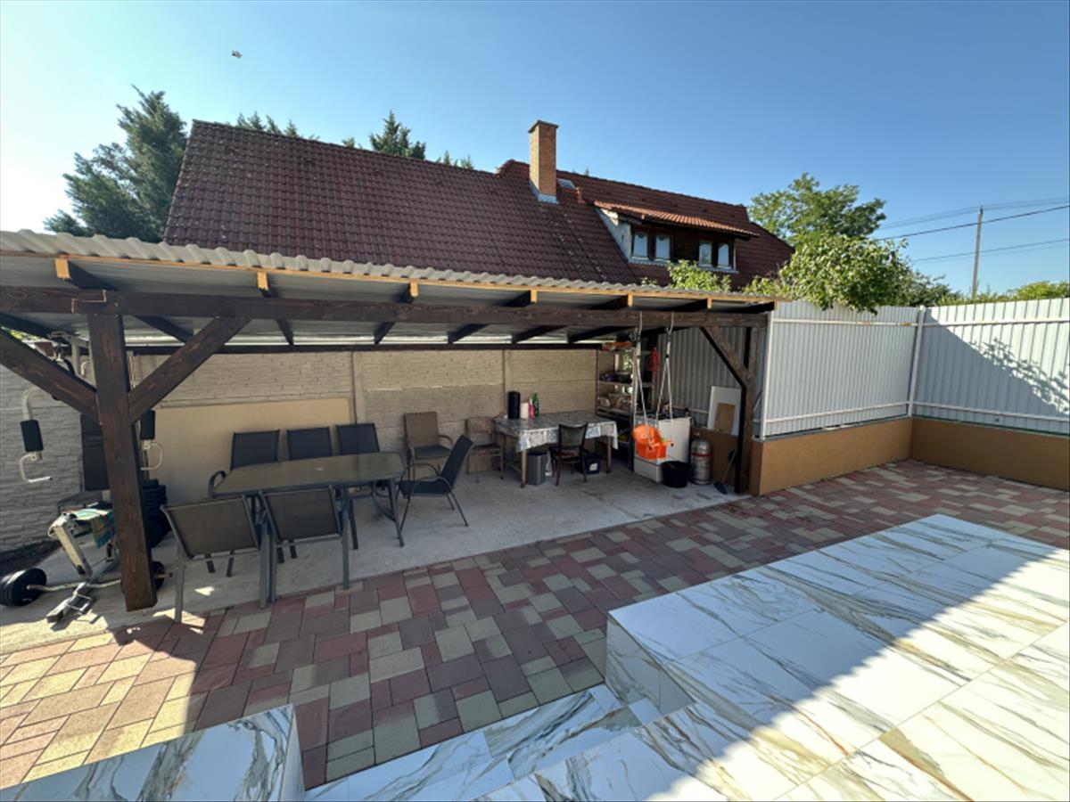 extrák: nyárikonyha, hatalmas terasz, fedett kocsibeálló