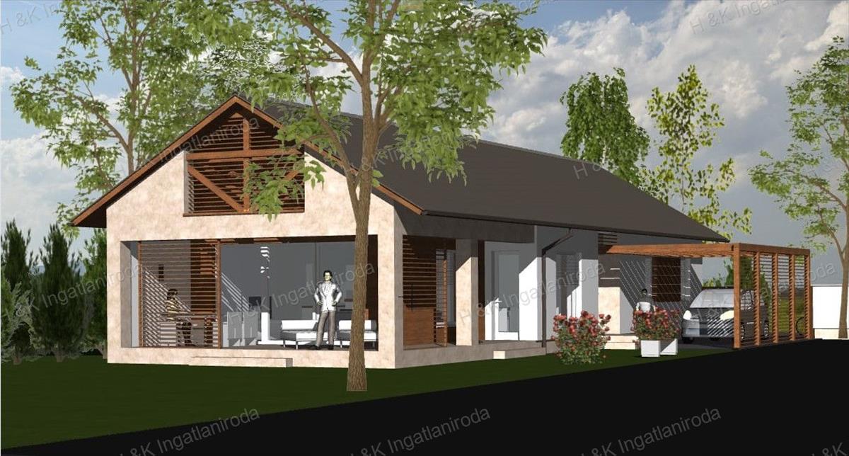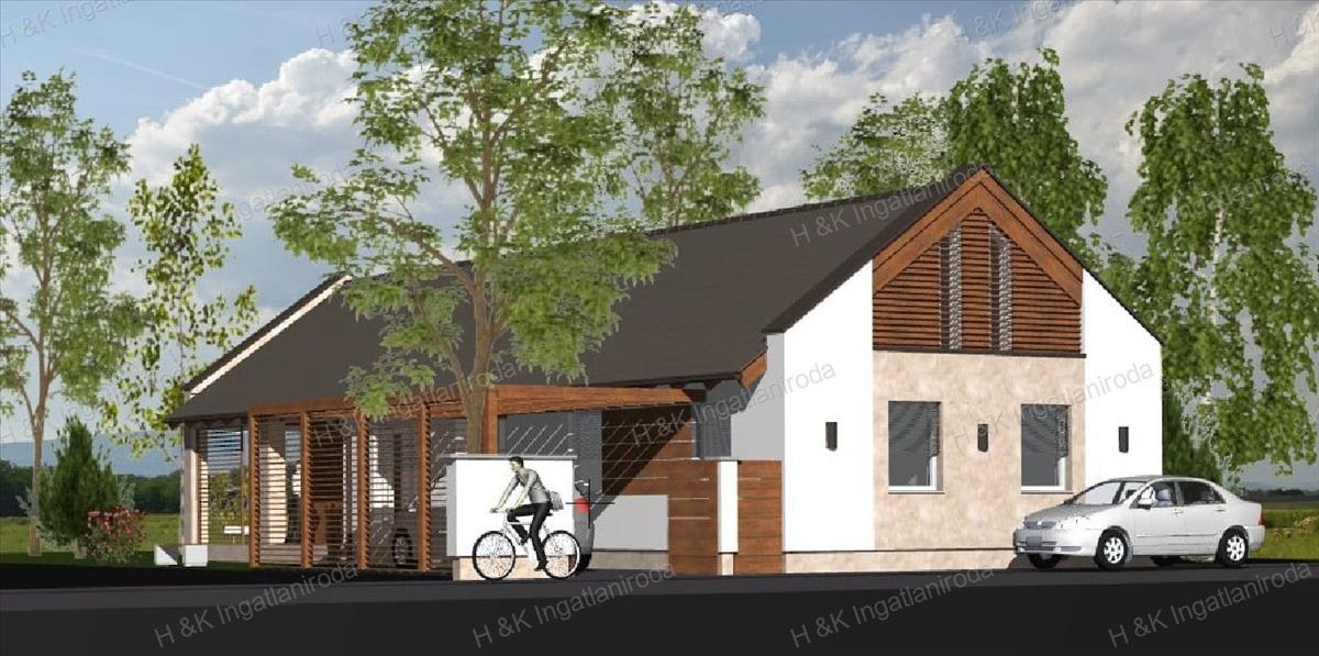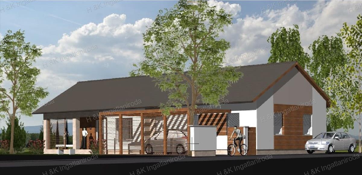 Parkolás: motorizált kapuval ellátott, viacolorral burkolt, pergolával fedett kocsi beálló kerül kiépítésre