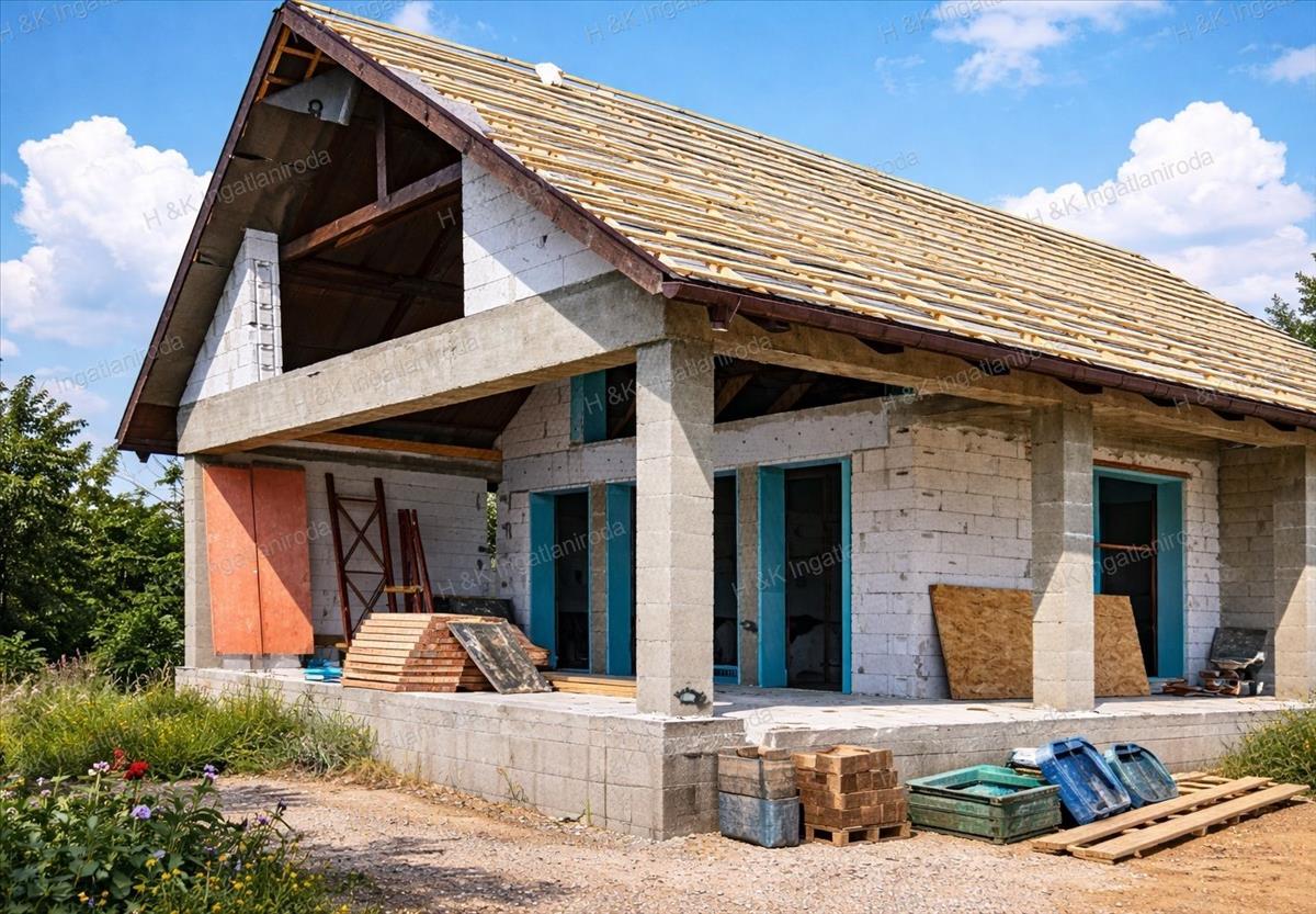 A fotókon az építő építés alatt lévő háza látható referenciaként.