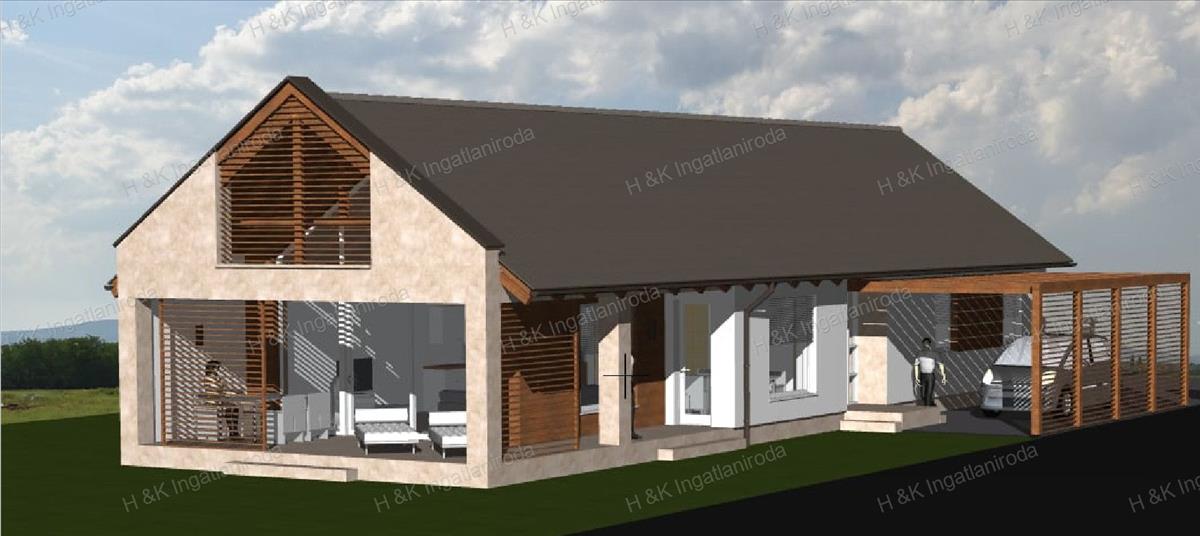 A ház Dryfix 30-as klímatéglából vagy Ytong falazóelemből (választható) épül, 15cm-es eps homlokzati hőszigeteléssel, Bramac betoncserép fedéssel.