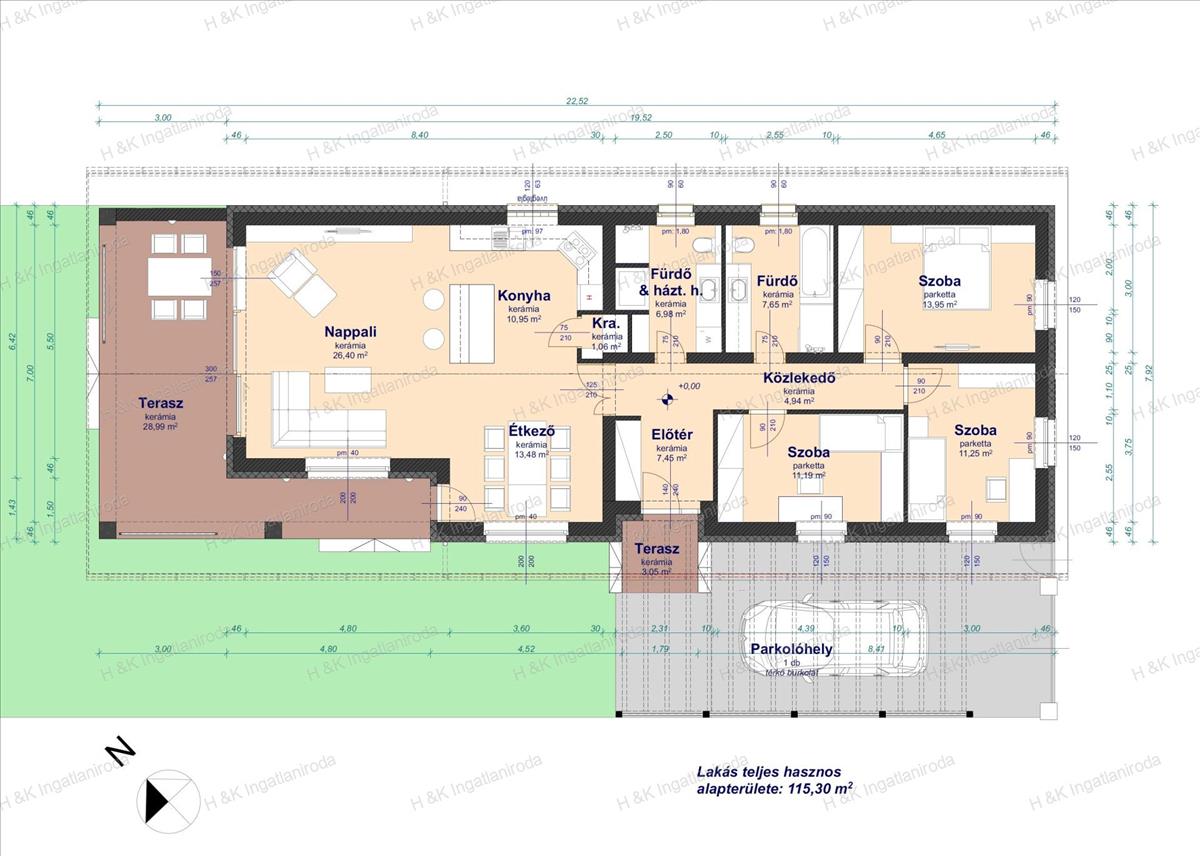 Jelen alaprajz szerint került meghatározásra az ár, de lehetőség van egyedi igények megvalósítására is (épülhet + szobával vagy garázzsal is).