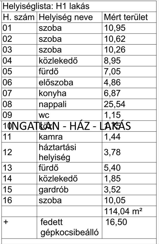 H1 házhoz tartozó telekrész 529 nm Fedett gépkocsibeálló 16, 50 nm Terasz 15, 80 nm