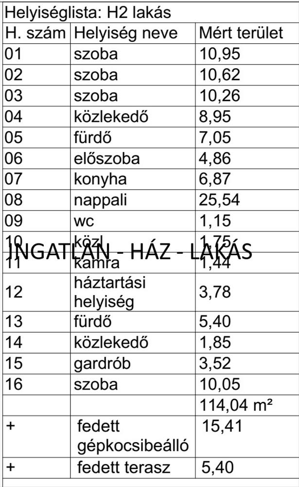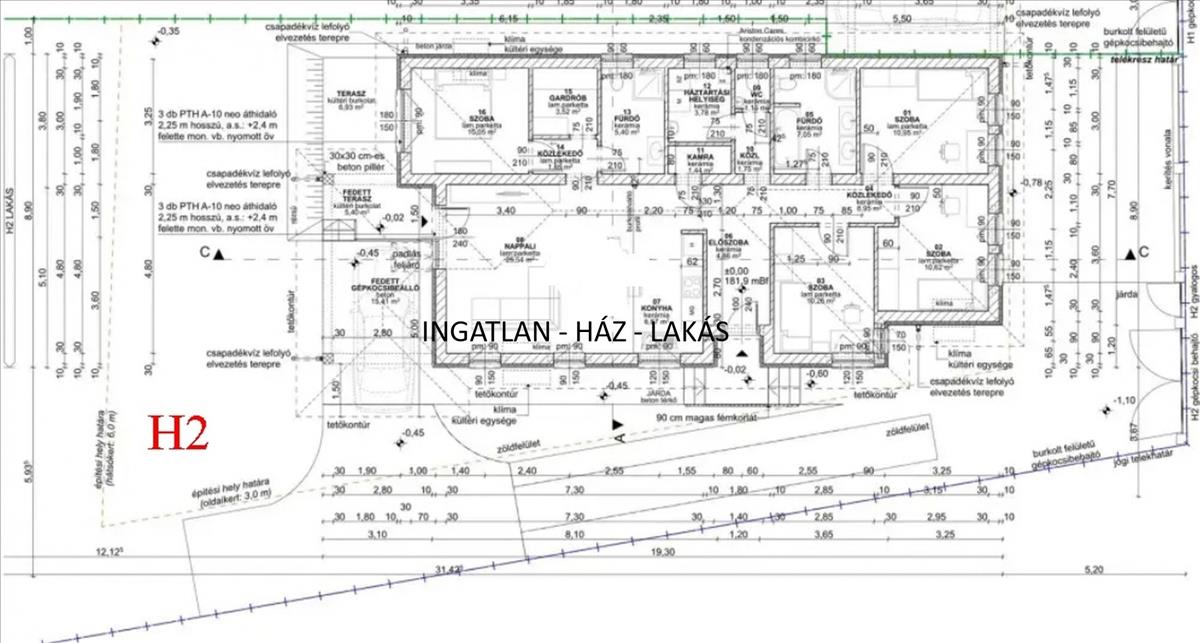 H2 házhoz tartozó telekrész 531 nm Fedett gépkocsibeálló 15, 41 nm Terasz 12, 33 nm