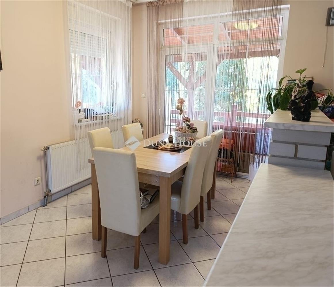 Eladó egy kiváló állapotú családi ház Veresegyház csendes mellékutcájában, a Pamut tó közelében. Az ingatlan egy 856 négyzetméteres telken helyezkedik el 164 négyzetméter alapterülettel, + 28, 8 m2 garázs + 23 m2 garázs feletti szobával. Az 1996-ban téglából épült, két szintes, öt szobás, vasbeton födémes, napfényes ház kiváló állapotban van. a fűtéséről gáz cirkó (a hideg burkolatok alatt padlófűtéssel a földszinten) és egy fa tüzelésű kandalló gondoskodik, míg a tetőtérben klíma is felszerelésre került. a ház dupla komfortos, keleti fekvésű, riasztóval felszerelt. 2 Nagy erkély (2x11 négyzetméter) a tetőtéri szobákból nyílik. a földszinten egy nagy fedett terasz (35 négyzetméter), továbbá egy épített medence is rendelkezésre áll. Az udvaron egy 36 négyzetméter alapterületű, két szintes melléképület található, melynek alsó szintje garázsként lett kialakítva, a felső szintet viszont hasznosíthatjuk akár külön lakrészként, akár vendégháznak vagy irodának. a teljes gépészettel ellátott medence, amely 4, 2x7, 8 méteres, felüdülést hozhat a forró nyári napokon. a csodálatos kertben játszótér, gyümölcsfák és fedett felszíni beálló is rendelkezésre áll, ami teljes körű kikapcsolódást és pihenést biztosít az egész család számára. Veresegyház ideális helyszín azoknak, akik csendes, nyugodt környezetben szeretnék élvezni az életet, miközben minden szükséges infrastruktúra és közlekedési lehetőség a közelben van. a természet közelsége és a település kiváló ellátottsága teszi ezt az ingatlant tökéletes otthonná. Ne hagyja ki ezt a ritka lehetőséget, fedezze fel, amit Veresegyház nyújthat Önnek és családjának! a környék infrastruktúrája és ellátottsága jó; iskola, óvoda, orvosi rendelő, piac, bevásárlási lehetőségek, valamint vasút- és távolsági buszmegálló sétatávolságra található. a Nyugati Pályaudvar 45 percen belül elérhető vonattal, az M3-as autópálya perceken belül megközelíthető személyautóval. FIX 3% lakáshitelre megvehető