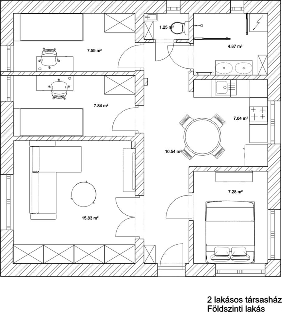 62 m², 2 + 2 félszoba