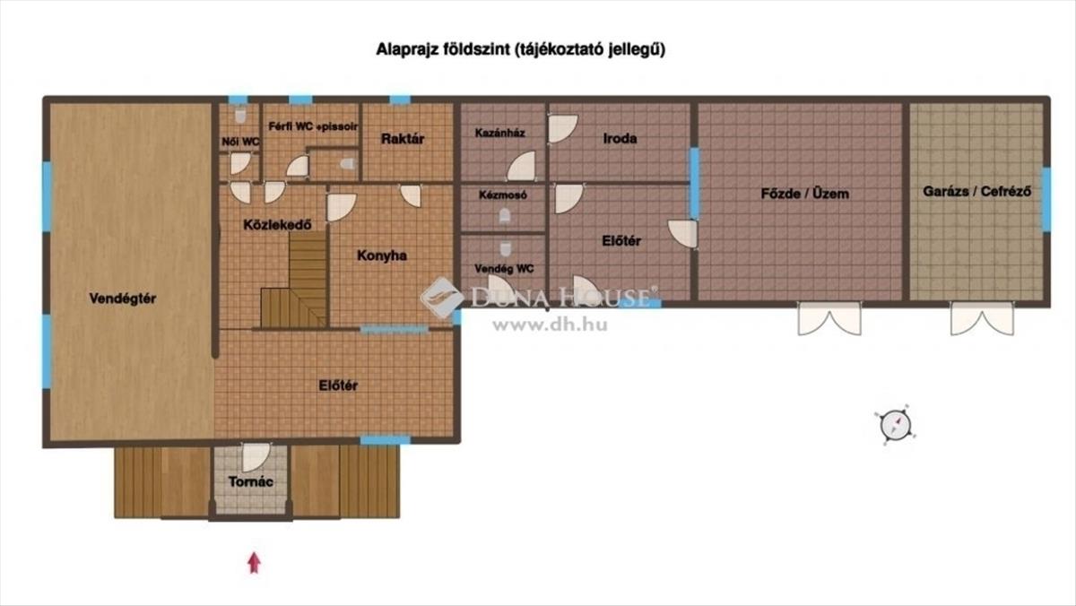 A földszinten (140 m²) található az üzem és a hozzá kapcsolódó, barátságos hangulatú vendégtér, amely kóstoltatásra, értékesítésre, kisebb rendezvények lebonyolítására is alkalmas. Az üzem és a vendégtér jól elkülönülnek egymástól, az udvar felől külön bejárattal rendelkeznek. Az udvaron burkolt parkoló és rakodótér került kialakításra.
