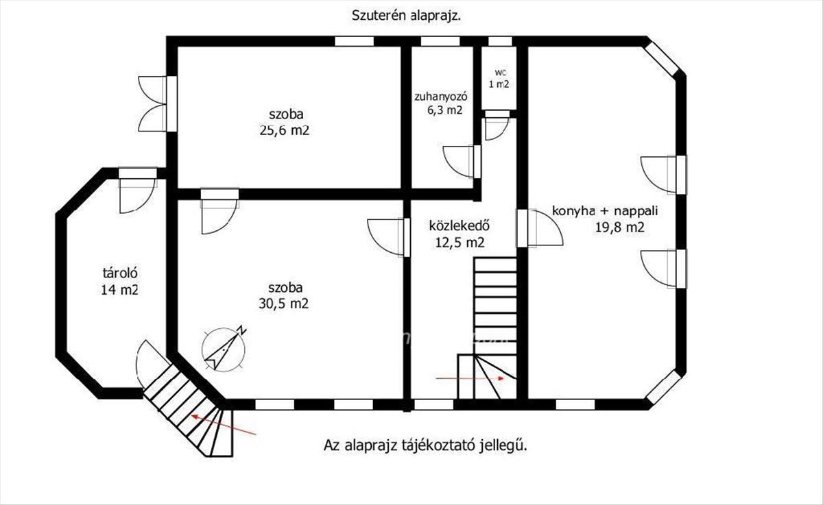 - Szuterén lakás : nappali és konyha étkezővel, hálószoba szaunával, fürdőszoba és külön wc, tároló helység.