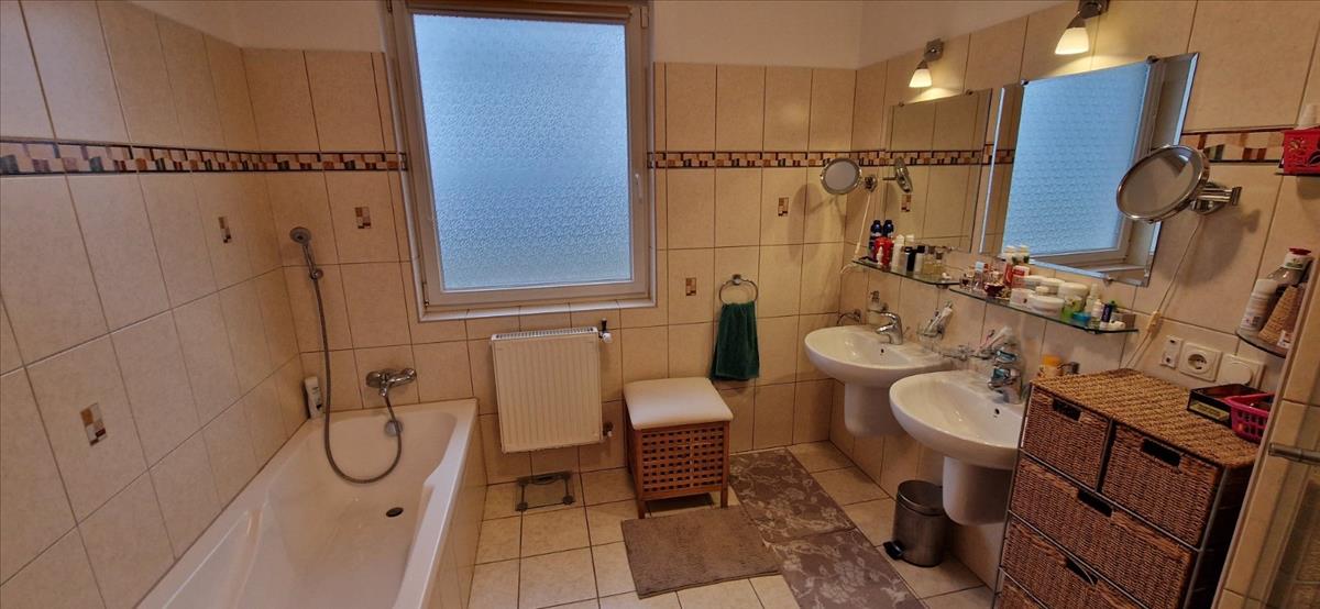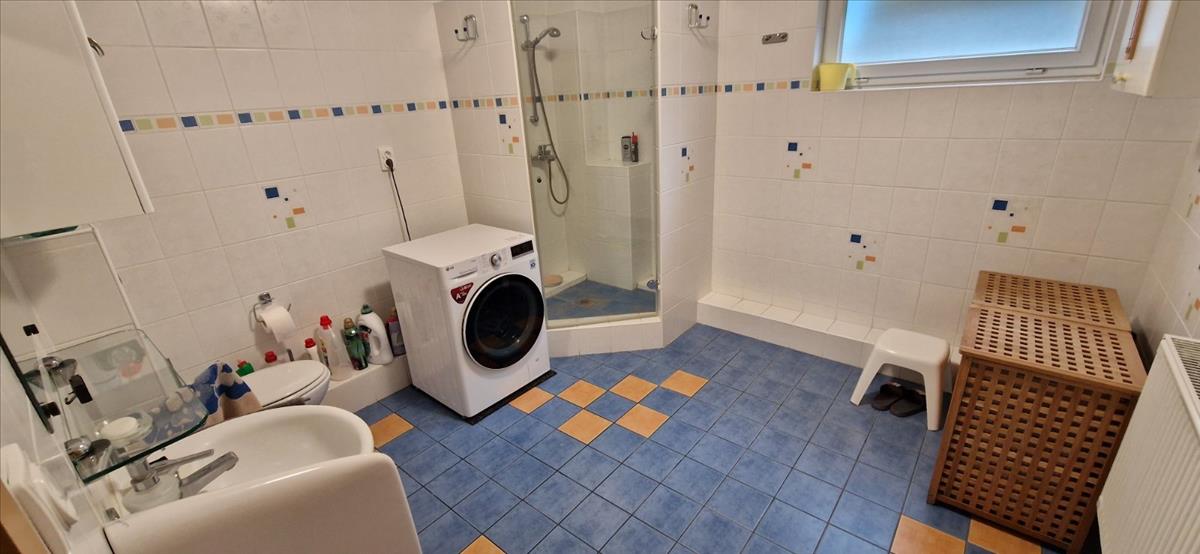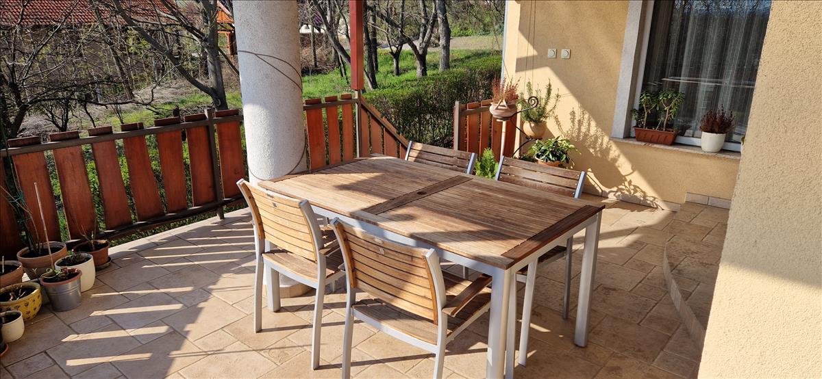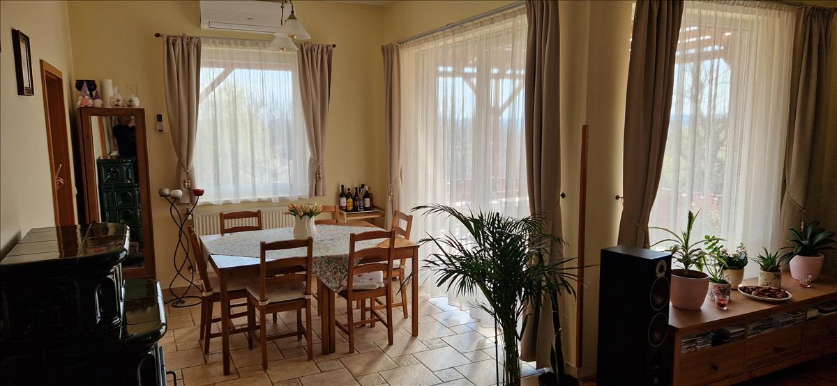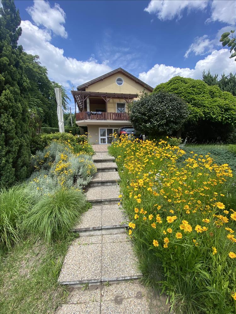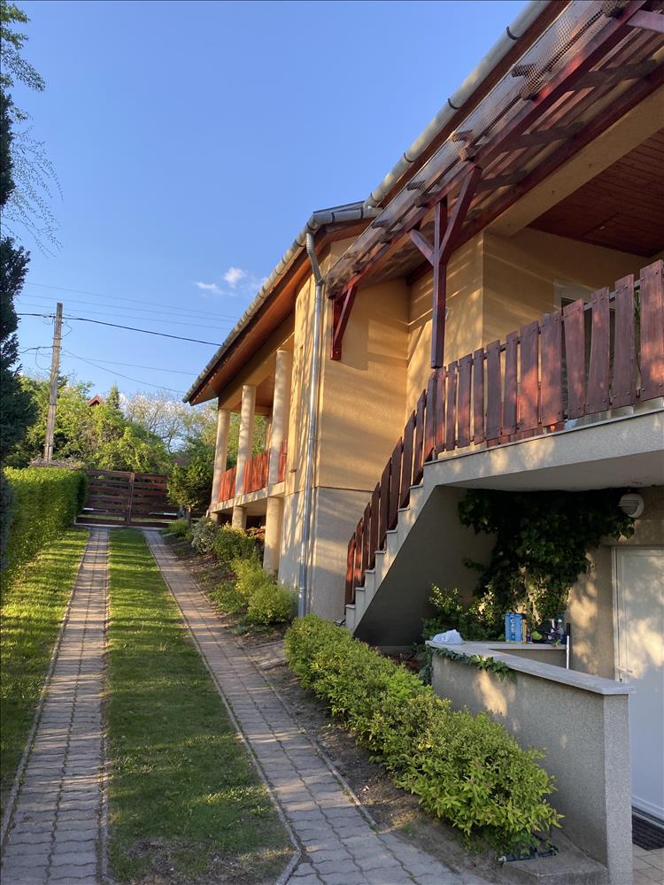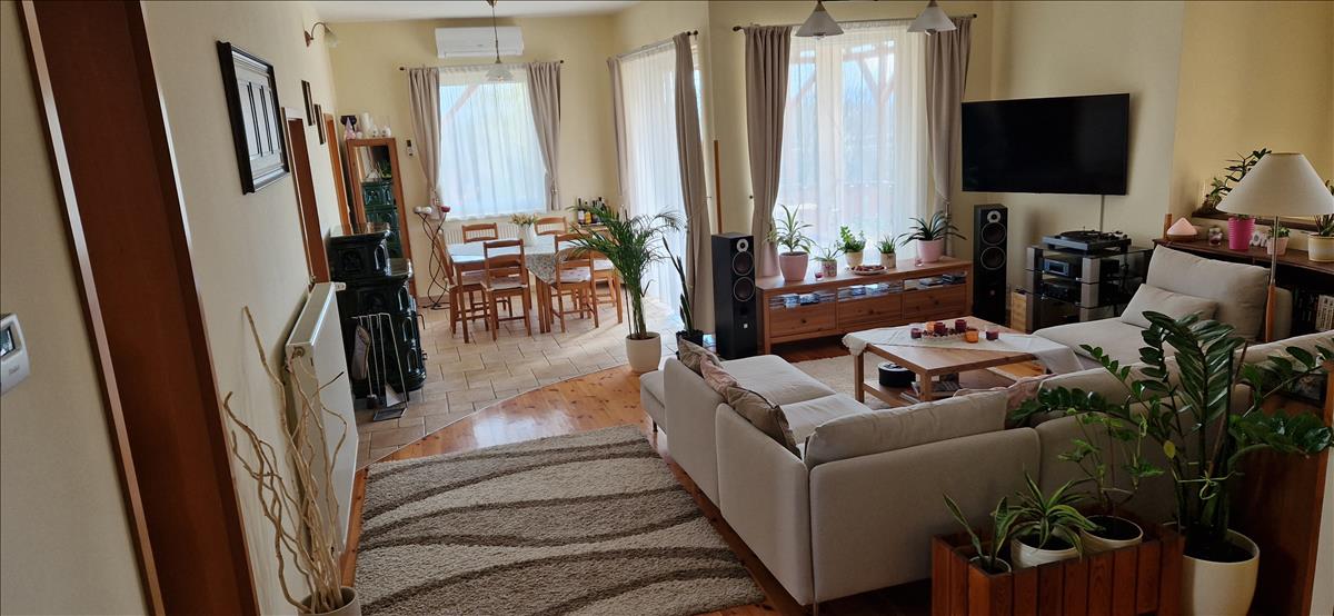 Ingatlan leírása: a szépen karbantartott ház két szinten, 195 nm területü. a földszinten található 3 hálószoba, 1 nagy, világos nappali, 1 gépesített konyha, 1 fürdőszoba (káddal és zuhanyzóval) és 1 különálló wc. a nappaliban hűtő-fűtő klíma és egy kis cserépkályha is található. a félszuterén használható akár önálló lakrészként (idősebb szülő(k) részére, kamasz gyermek részére, aki szeretne egy kicsit önállóan, de mégis a szülők közelében élni, konditeremként, tároló helységeknek, üzletnek, műhelynek, kiadható, stb. ) a félszuterén – mely a telek lejtős jellege miatt földszinti, teljes értékű szintnek tekinthető - jelenleg egy szép, világos nappaliból (kétszárnyú, kertre néző ajtókkal), konyhából (teljes értékű, világos ablakkal), fürdőszobából (ablakkal), és 2 tárolásra alkalmas helységből áll. a félszuterén megközelíthető lakáson belülről és kívülről is attól függően, hogy milyen célt szolgál. Jelenleg teljes értékű lakóhelyként funkcionál.