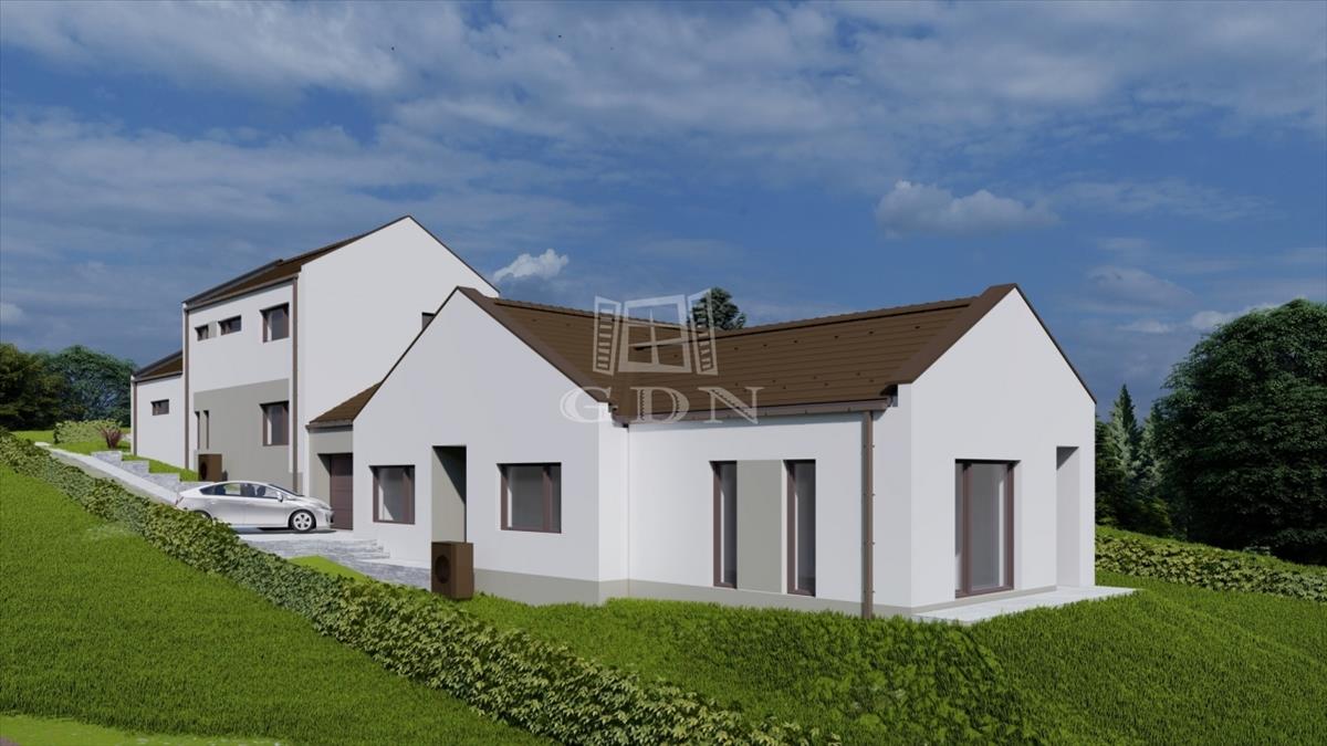 Veresegyház, Hegyek városrész csendes, kertvárosias részén, cca. 450 Nm-es telek területtel, Új építésű, bruttó 181 nm-es, 4 szobás (nappali + 3 hálószoba, külön konyha, étkező), két szintes, vasbeton födémes (az emeleten is), hőszivattyús (levegő - vízes) padló fűtéssel, Dél - Keleti fekvésű, műanyag thermo dió színű (3 rétegű, 7 légkamrás) nyílászárós, szigetelt (15 cm dryvit), új építésű, a másik féltől teljesen elszaparált, garázzsal elválasztott, a másik lakóegységgel egy telken lévő családi ház (első) eladó.