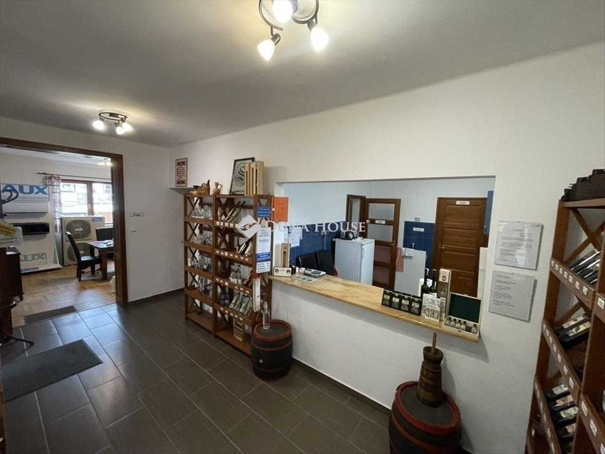 Az alsó szintjéről és az udvar felől is megközelíthető a jelenleg pálinkafőzdeként működő házrész. Ezt az új tulajdonos igénye szerint könnyen teljesen le is tudja választani a lakóháztól. Az üzemrészben található az előtérből megközelítve az iroda, tárolók, vendég-WC és a csarnok.