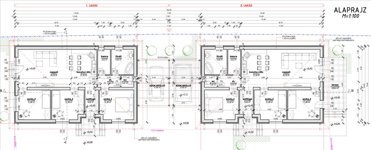 Az ingatlanok közvetlenül nem érintkeznek, csak a fedett parkoló köti össze az ingatlanokat!