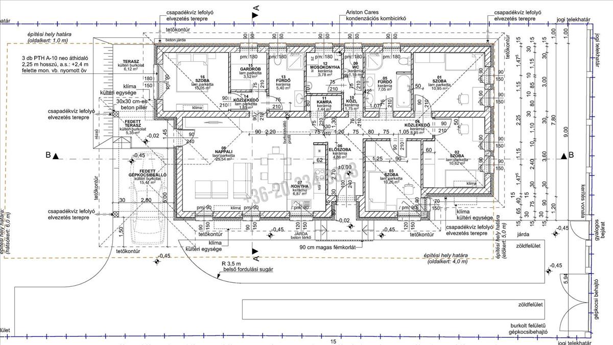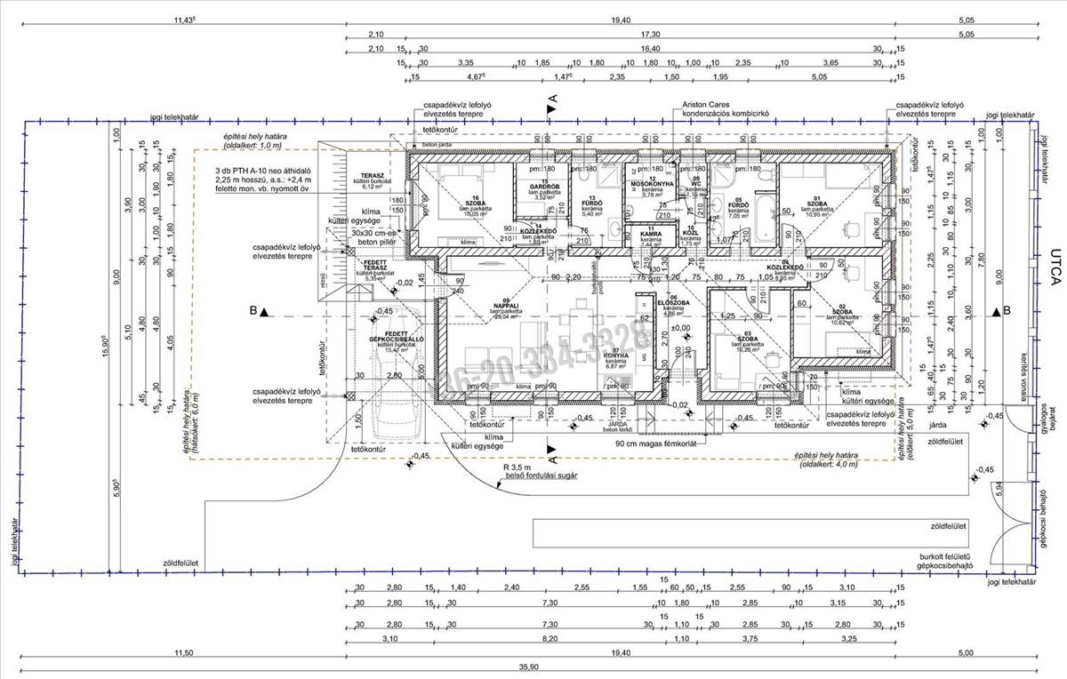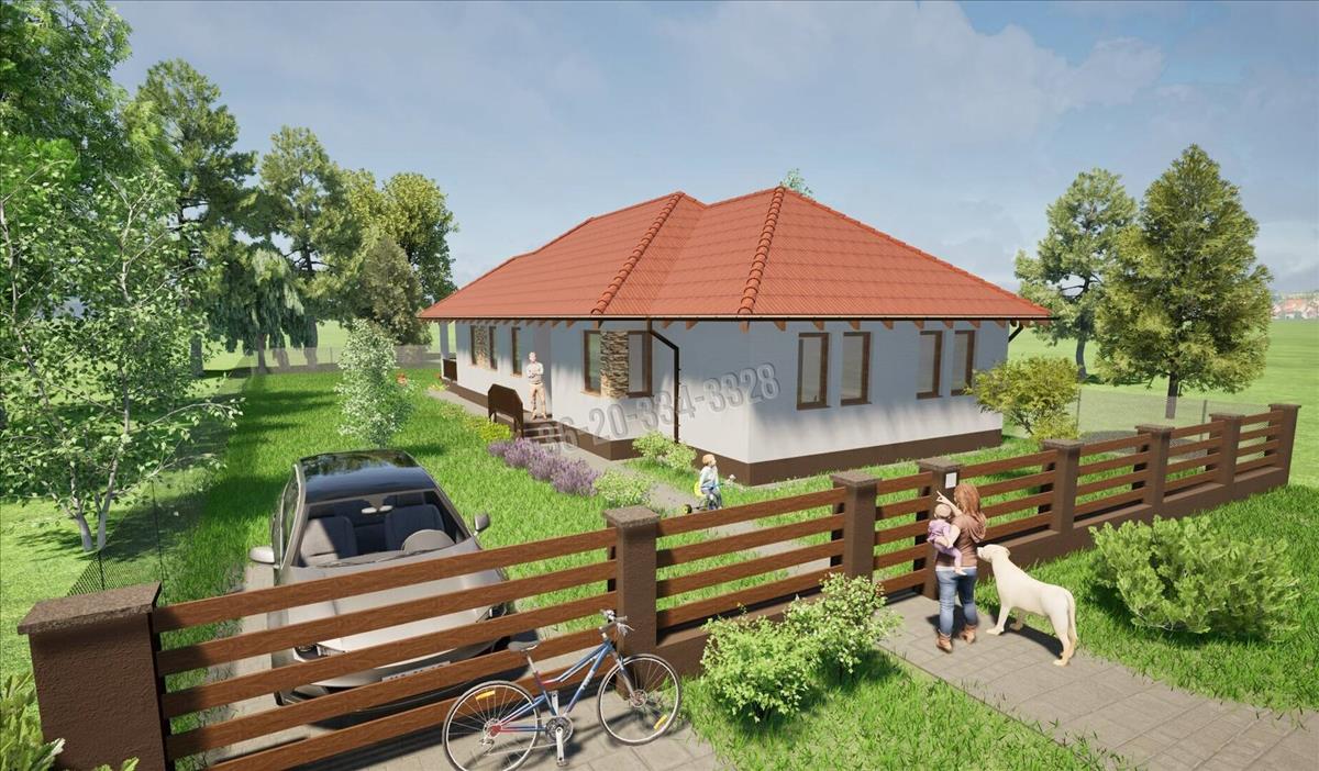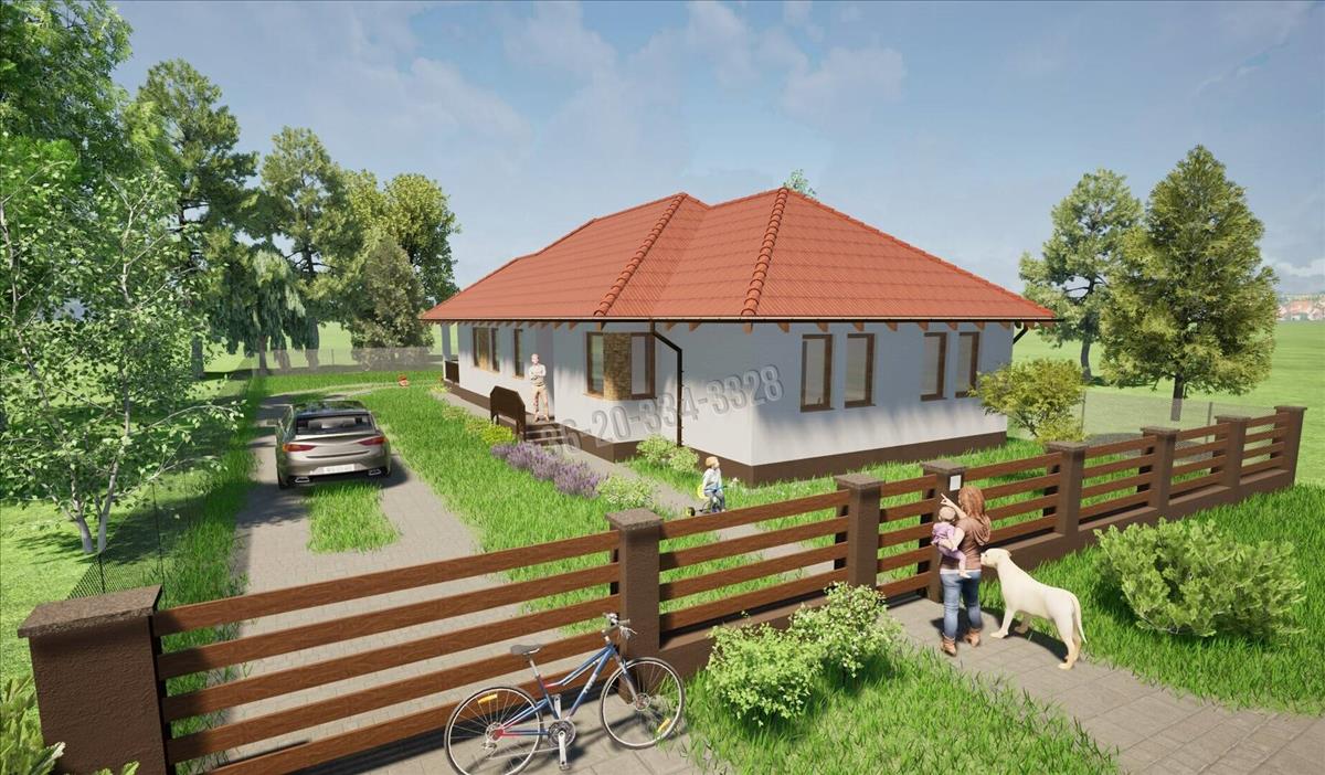 - 32 nm-es amerikai konyhás nappali terasz kapcsolattal, 4 hálószoba, gardrób, 2 fürdőszoba, háztartási helyiség, kamra, vendég wc, előszoba-közlekedő.