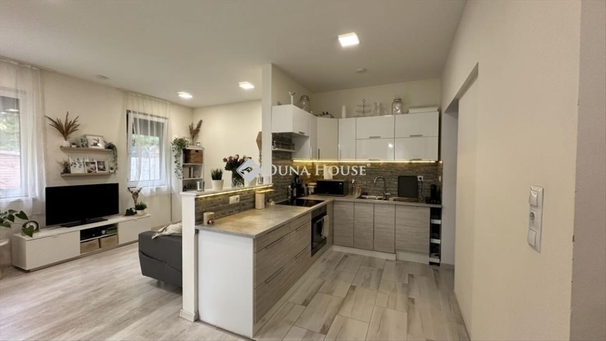 Veresegyház tavak régióban eladó 2019-es építésű acélvázas technológiával készült könnyűszerkezetes családi ház. Az ingatlan tájvédelmi terület közvetlen szomszédságában, egy csendes, aszfaltozott kis utcában található, remek lokációval rendelkezik. a helyi buszjárat mindössze 2 perc sétával, vonat, távolsági busz, óvoda, általános iskola, gimnázium, játszóterek 5-15 perc sétával, autóval 2-5 perc alatt érhetők el. Lidl, orvosi rendelő, piac, uszoda, termálfürdő mindössze 5-10 perc autóval. Az ingatlan főbb jellemzői:A telek összközműves, 440 m2, az előkert rendezett, díszcserjékkel parkosított, a hátsó kertben most fejeződött be az öntözőrendszer kiépítése. a kert végében egy 7 m2-es fészer kapott helyet, a kert gondozásához szükséges szerszámok tárolására. Az épület mellett 42 négyzetméteres Viacolor burkolatú kétautós kocsibeálló került kialakításra. a ház külső megjelenése mediterrán jellegű, nagyon jó állapotban van. Könnyűszerkezetes, acélvázas technológiával készült. Ez a technológia nálunk még kevésbé elterjedt, de igen kedvelt szerte a világon, az USA-ban és Kanadában a házak jelentős része így épül. a falak között 15 cm vastag kőzetgyapot szigetelés, a homlokzaton 12 cm vastag dryvit hőszigetelés van. a műanyag nyílászárók redőnnyel ellátottak. Az amerikai konyhás nappali közvetlen teraszkapcsolattal rendelkezik, a fedett teraszt a kerttől mindössze két lépcsőfok választja el. a konyhához kamra kapcsolódik. Ezeken kívül az ingatlanban három hálószoba, közlekedő, fürdőszoba WC-vel és egy külön wc is található. a fűtésről (padlófűtés) gáz cirkó és egy hűtő-fűtő klíma gondoskodik. Az ingatlan összhatása nagyon kellemes. Kívül az ápolt, rendezett kert és épület, belül a barátságos, otthonos környezet gondoskodik a lakók jó közérzetéről. Kiválóan alkalmas kisgyermekes családoknak, illetve bárkinek, aki kedveli a természet közelségét és a teraszon elfogyasztott kávéhoz a madárcsicsergést. Nézze meg! Fedezze fel! Találja meg itt álomotthonát! Hiteligény esetén bank független hitelügyintézésben tudok segíteni. Kérdés, megtekintési igény esetén keressen bizalommal! FIX 3% lakáshitelre megvehető